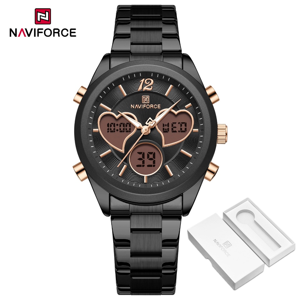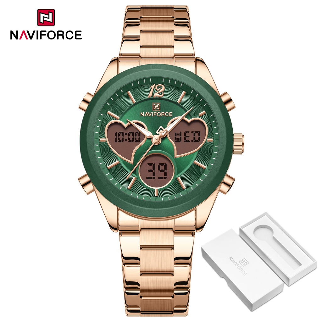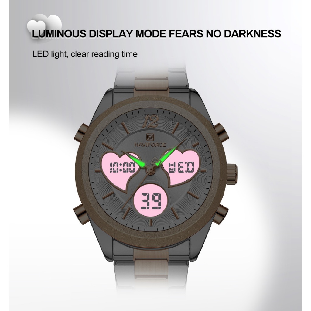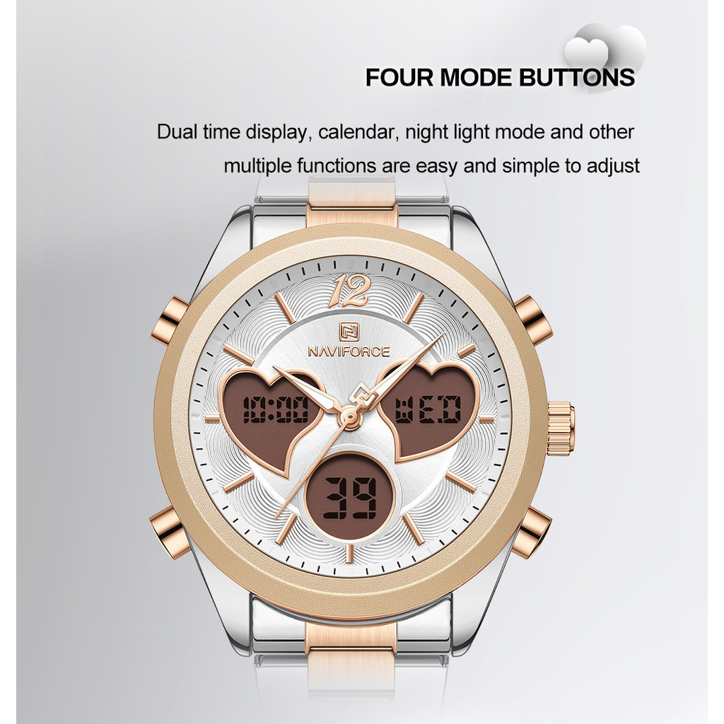 NAVIFORCE 5045S Romântico Elegante Multi-Dial Multifuncional Botão Duplo Relógio Feminino