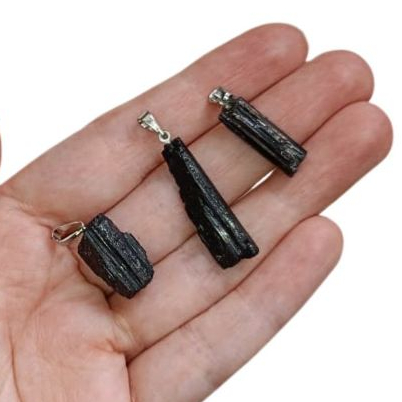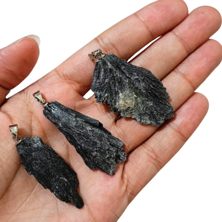 Kit Pingentes da Proteção Turmalina Selenita Cianita Pedra Natural Bruta Colar