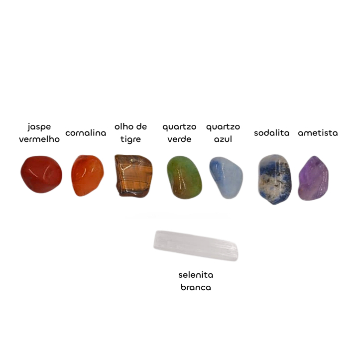 Kit 7 Chakras Pedra Rolada Pequenas + Saco Organza + Selenita Branca 8 Cristais Mini Kit Les Energie