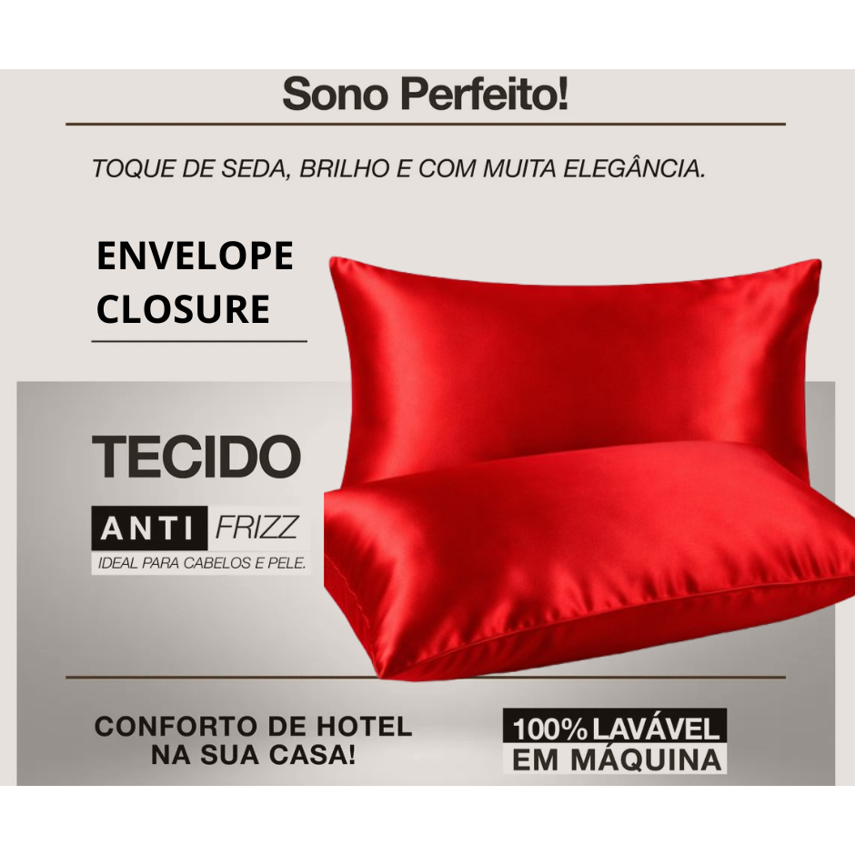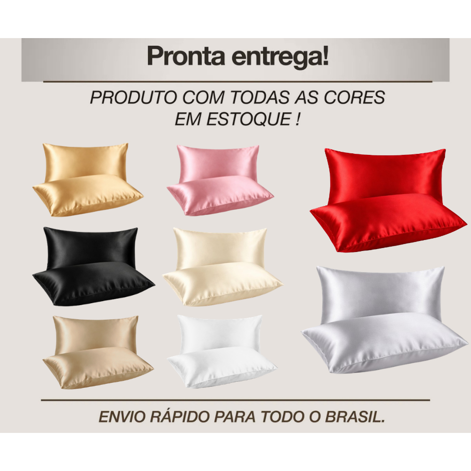 Kit 2 Fronha Cetim Travesseiro Cama Toque de Seda Macio Anti frizz Cabelo 50x70cm com Aba