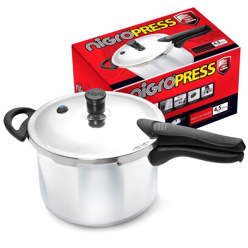 Panela de Pressão 4,5 Litros em Alumínio Polida Nigro Press com 4 Sistemas de Segurança