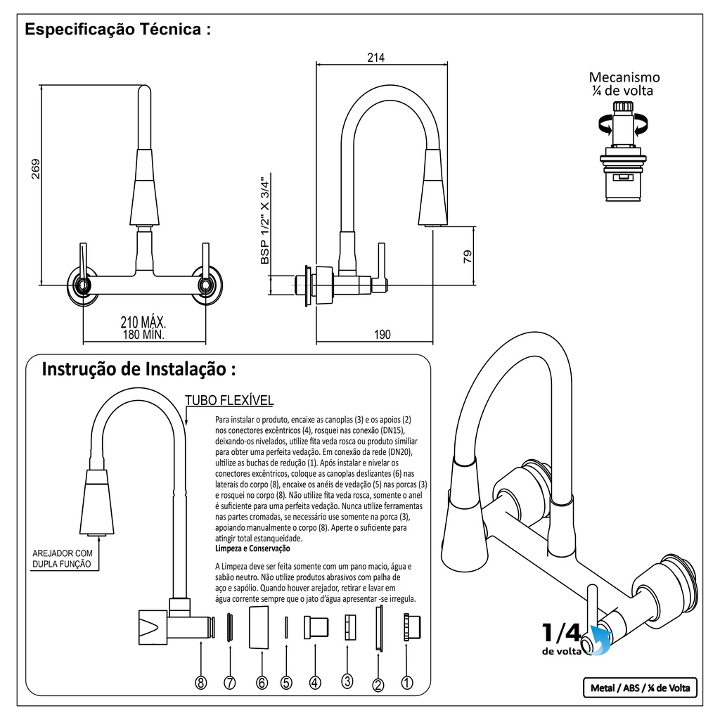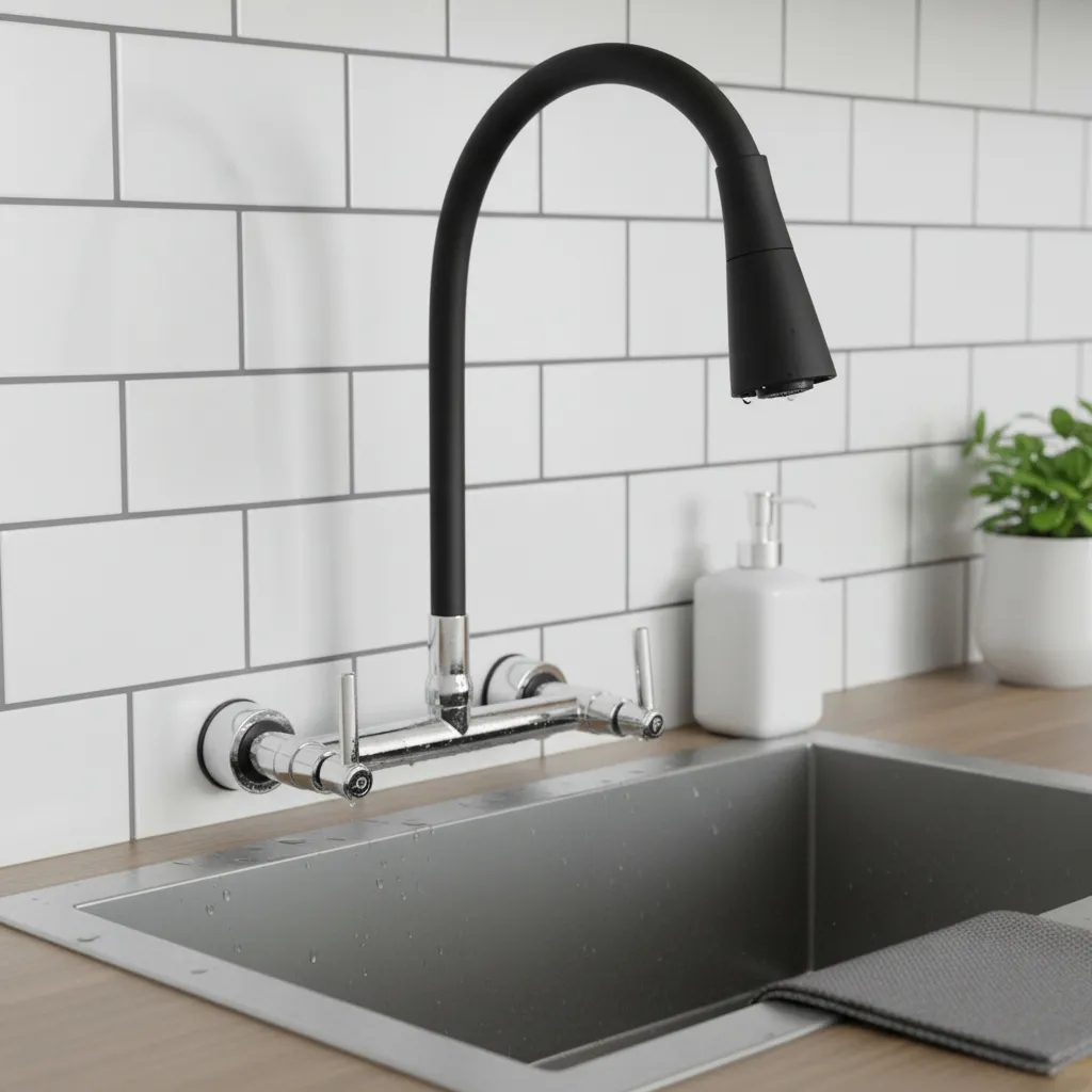 Torneira Misturador Cozinha Tubo Conic Flexível Preto 2 Jato Parede Meli