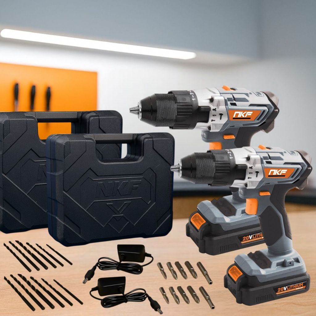 Kit 2 Parafusadeira Furadeira de Impacto à Bateria com 2 Baterias 20V Bits Brocas e Maleta FP20X NKF