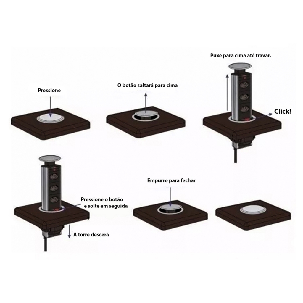 Kit com 2 Torres de Tomada de Embutir Multiplug Tomada de Bancada Torre de Tomada 20 Amperes