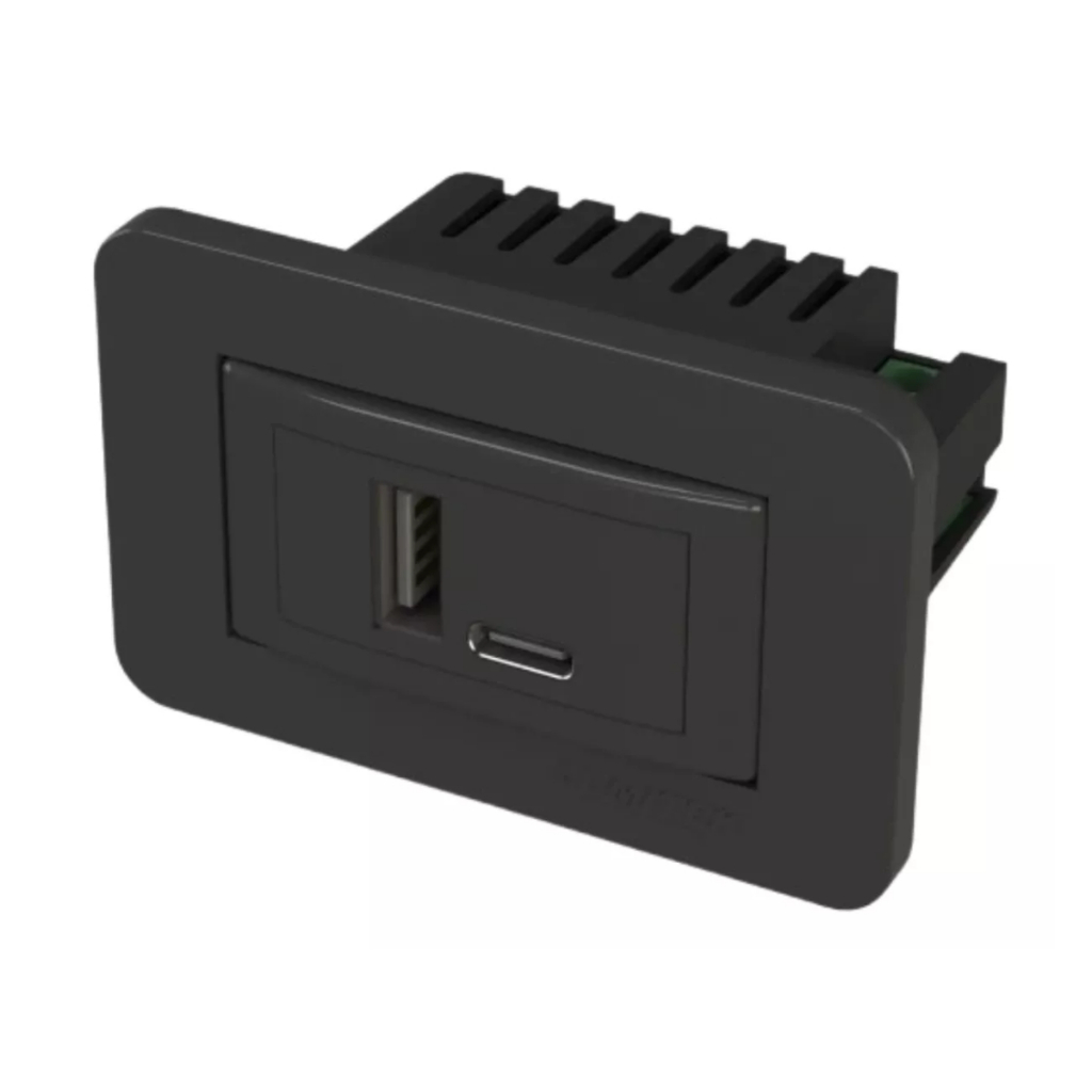 Tomada USB 2 Portas A+C 5V 2A para Parede com Instalação Prática e Acabamento Premium