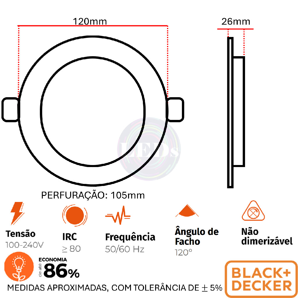 Kit 2 Plafon Redondo Embutir 6w Preto Branco Quente 3000K