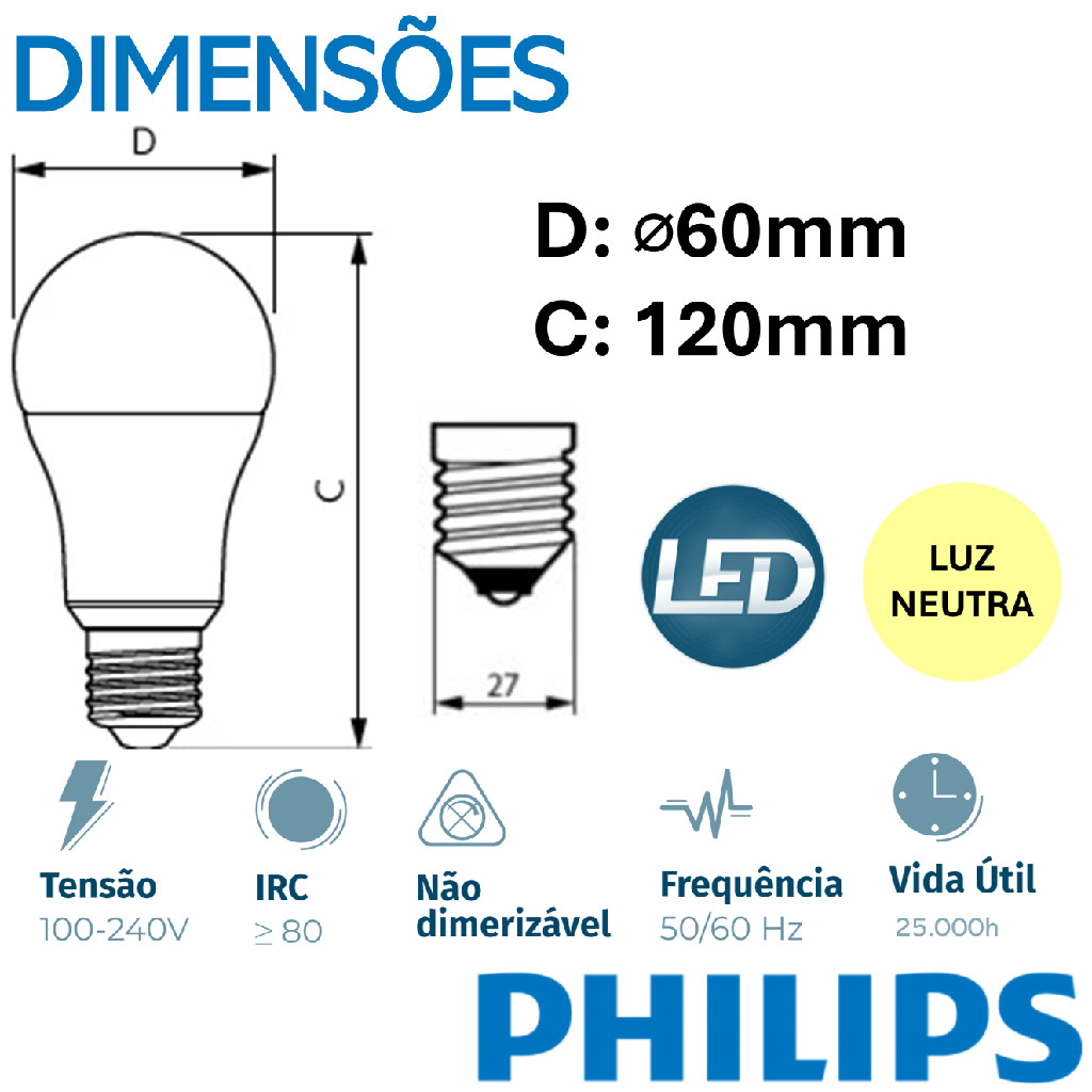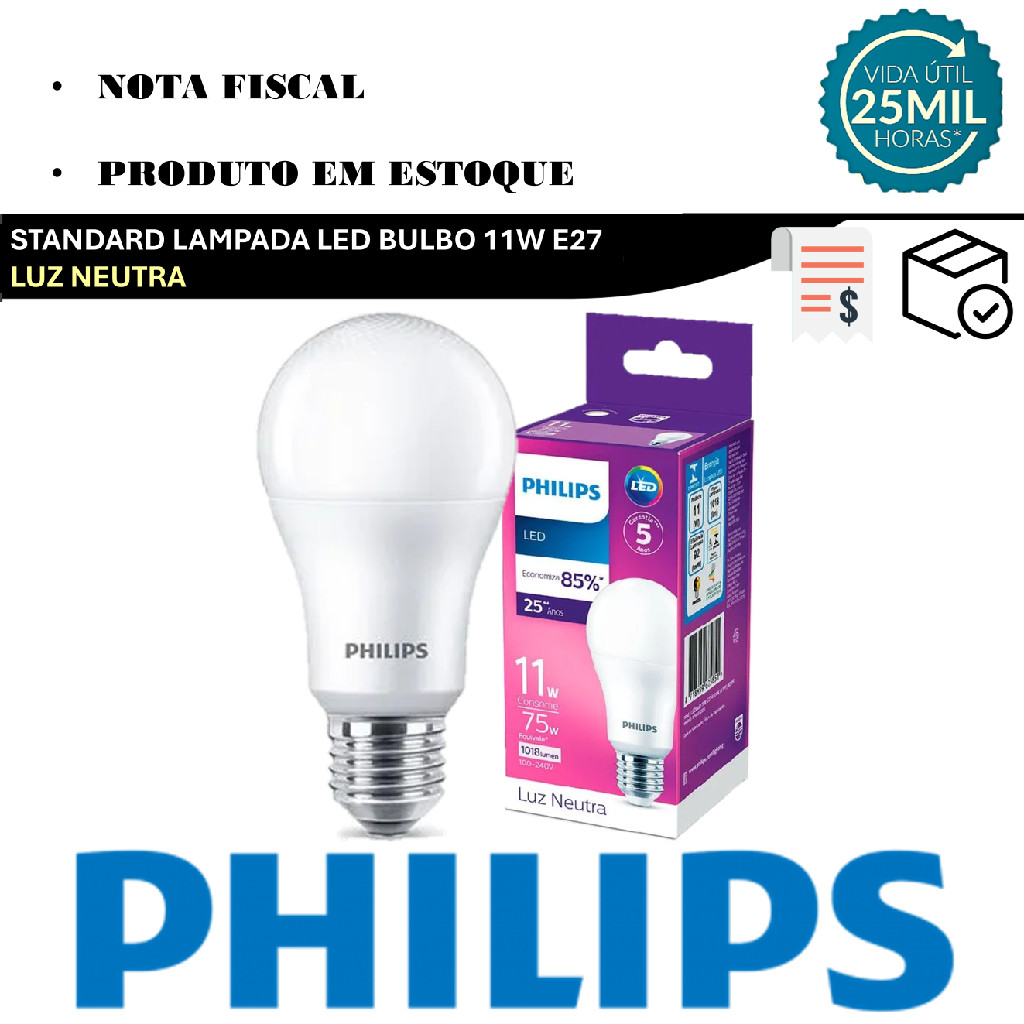 Kit 4 Lampada Led Bulbo Philips 11w Branco Neutro 4000K E27