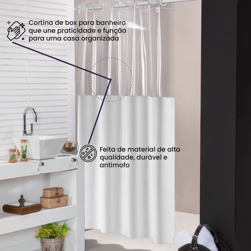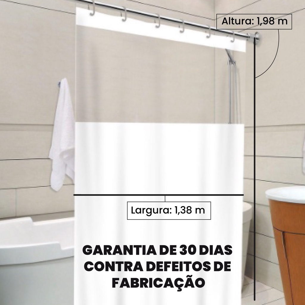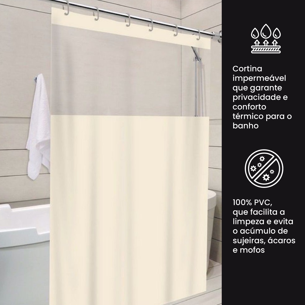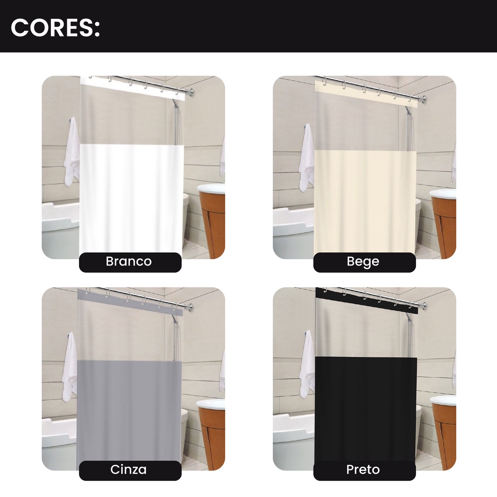 Cortina de Box Com Visor Transparente Em PVC Impermeável Para Banheiro Anti Mofo Com Ganchos Varias Cores
