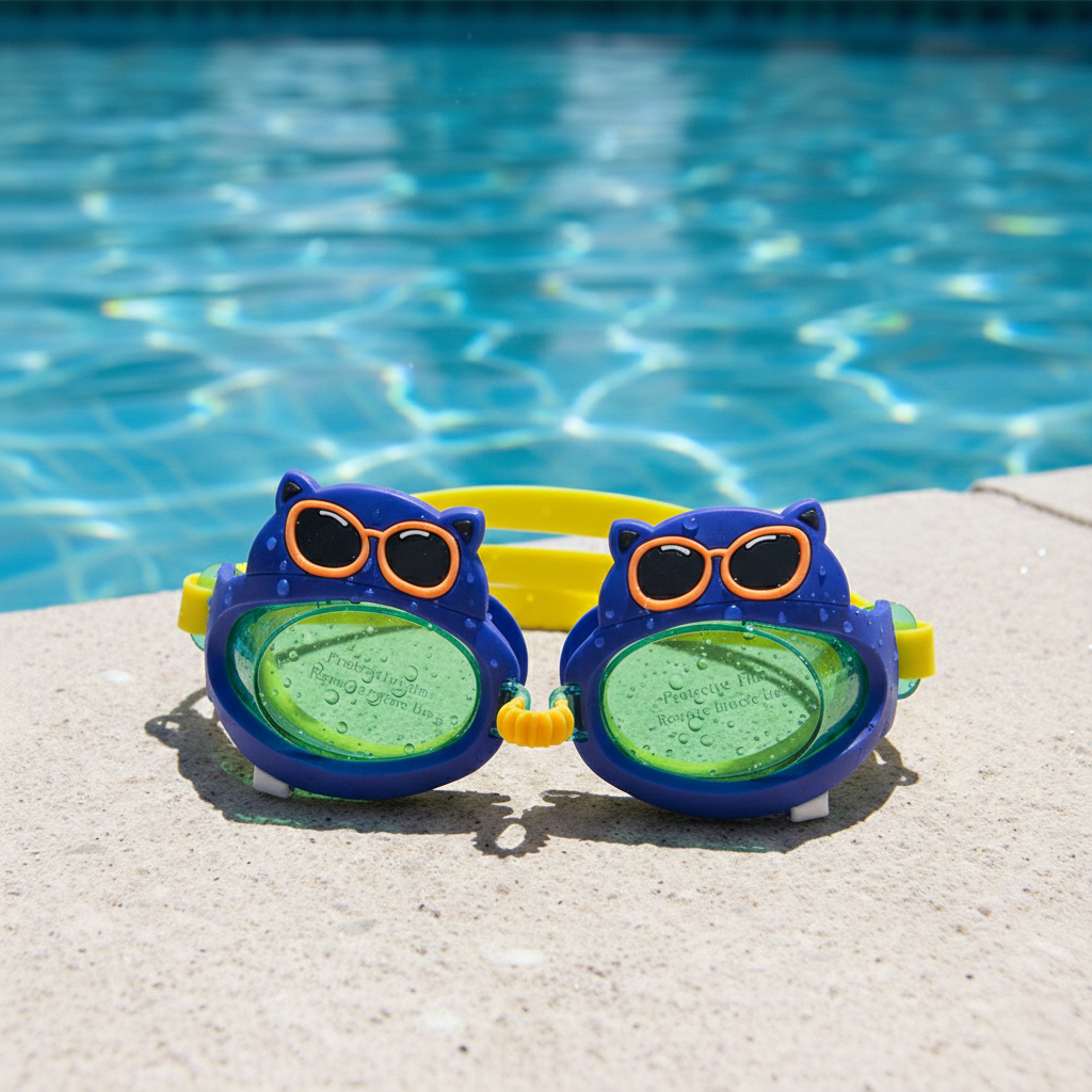 Óculos de Natação Infantil 3+ Anos Antiembaçante Ajustável Animais Marinhos Tubarão Praia Piscina