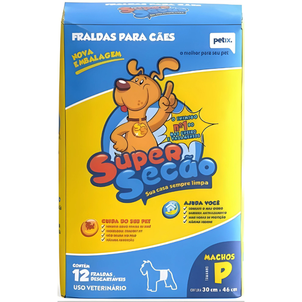 FRALDA DESCARTÁVEL PARA CÃES CACHORRO MACHO SUPER SECÃO TAMANHO P - 24 UNIDADES CONFORTÁVEL