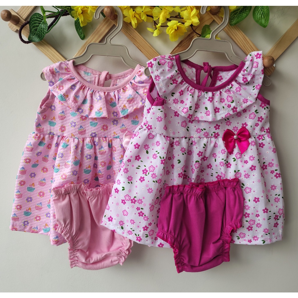 Vestido infantil bebê menina com calcinha tapa fralda