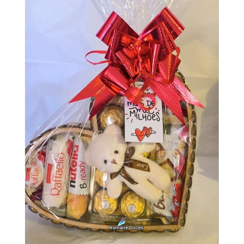 Cesta de Coração Para Presentear Ferrero (Aniversário, Namorados, Amigo, Dia das Mães, Dia dos Pais)