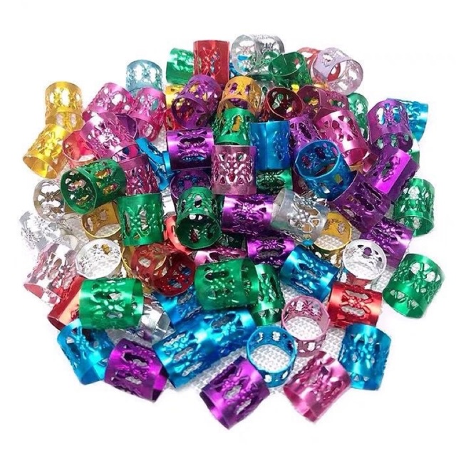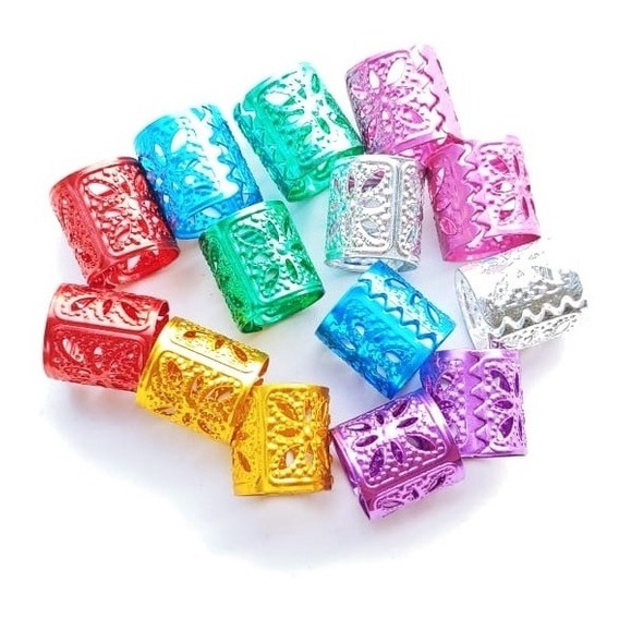 kit 200 Anel Para Trança Regulável Box Braids E Dreads Coroa tubo cano cabelo Dourado, Prata e Colorido