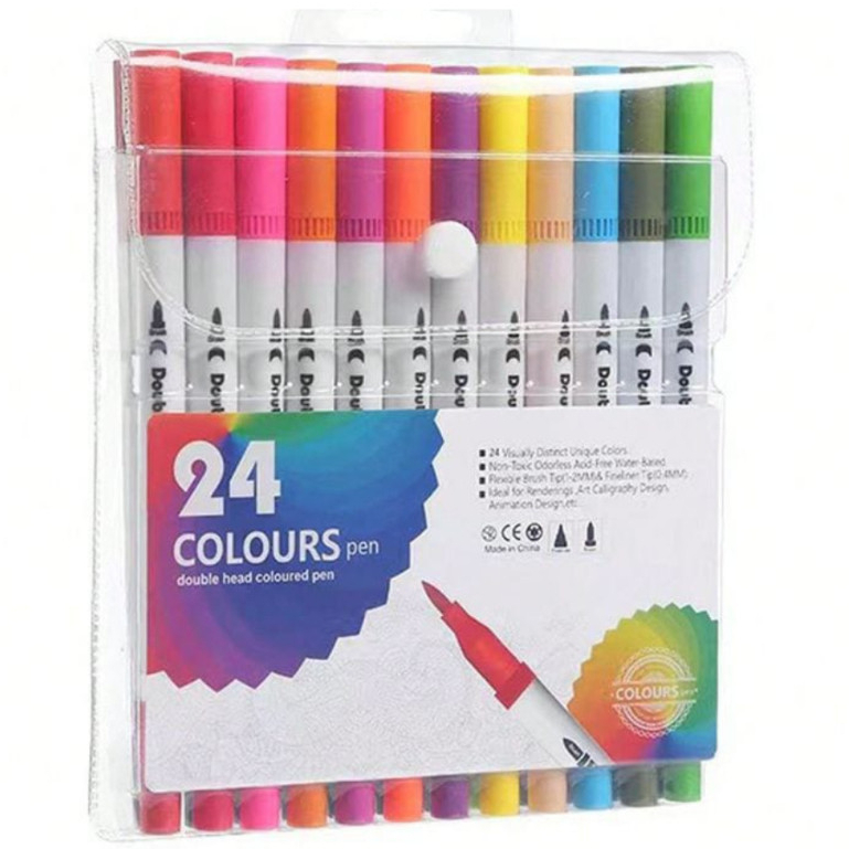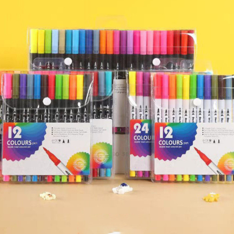 Kit Brush Pen Caneta Duas Pontas Dupla Pincel Fineliner 24/36/48/60