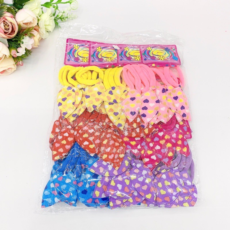 Kit 48 Xuxinhas com lacinho Elásticos de cabelo