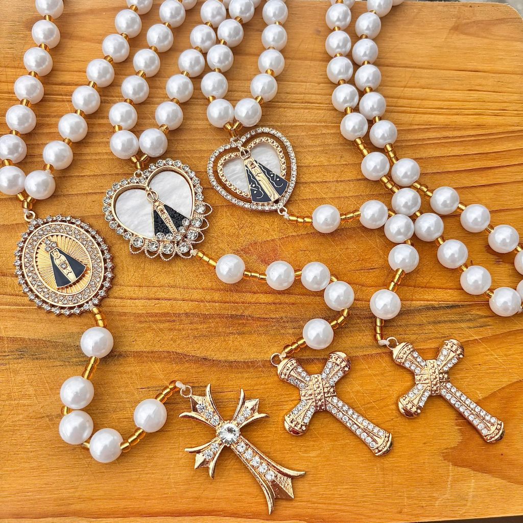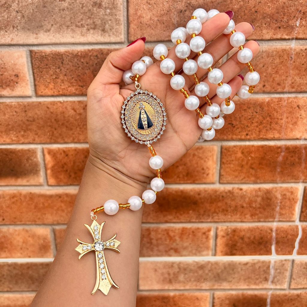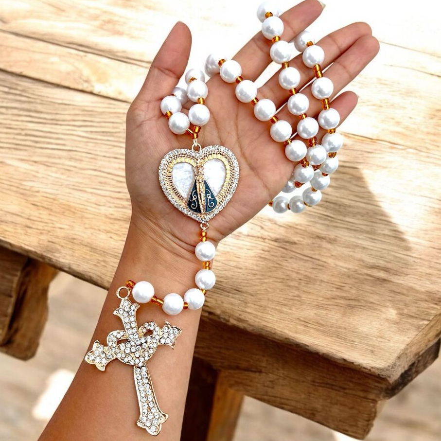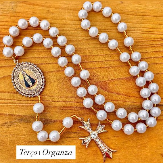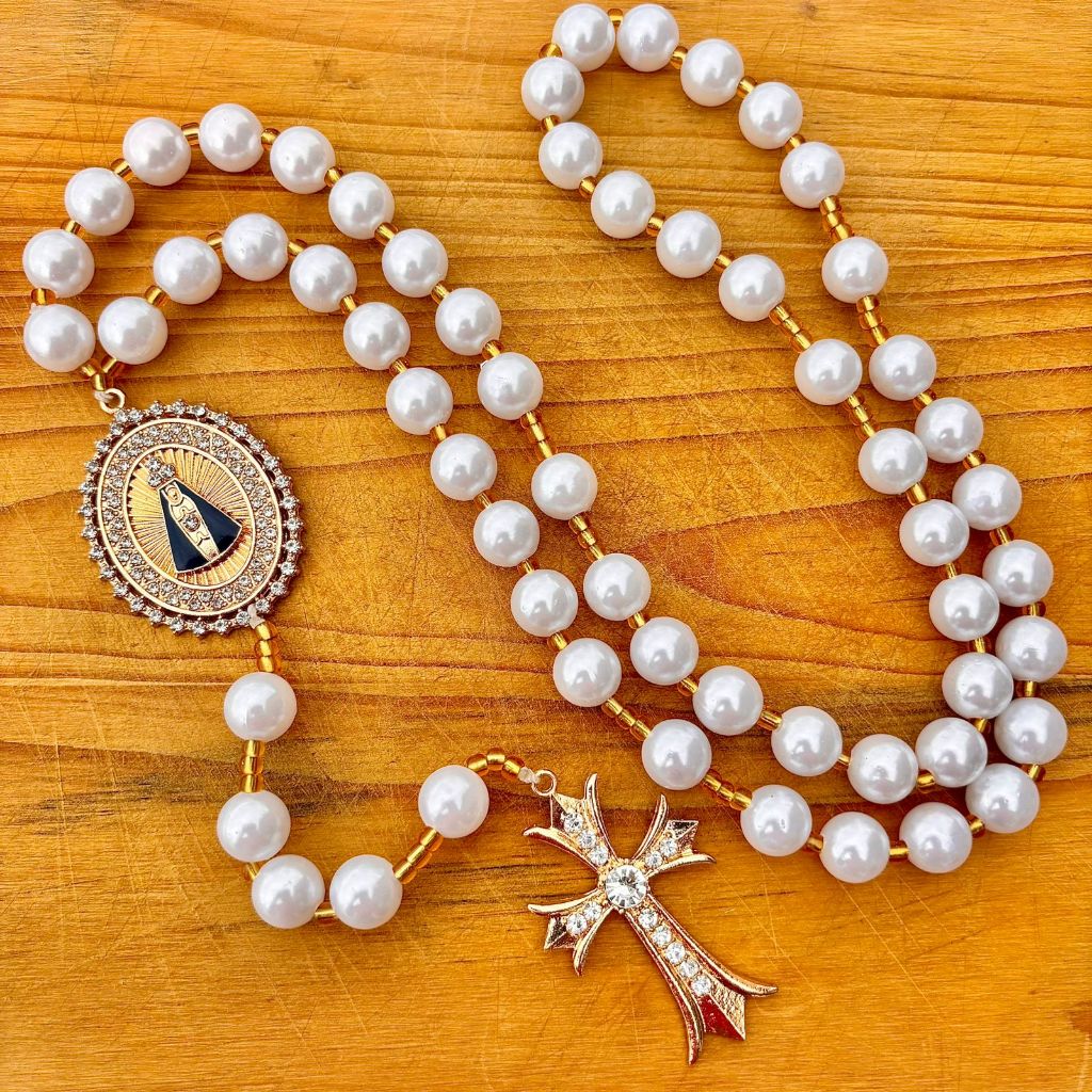 Terço Noiva Pérola com Strass de Luxo Terço 66 cm- PROMOÇÃO