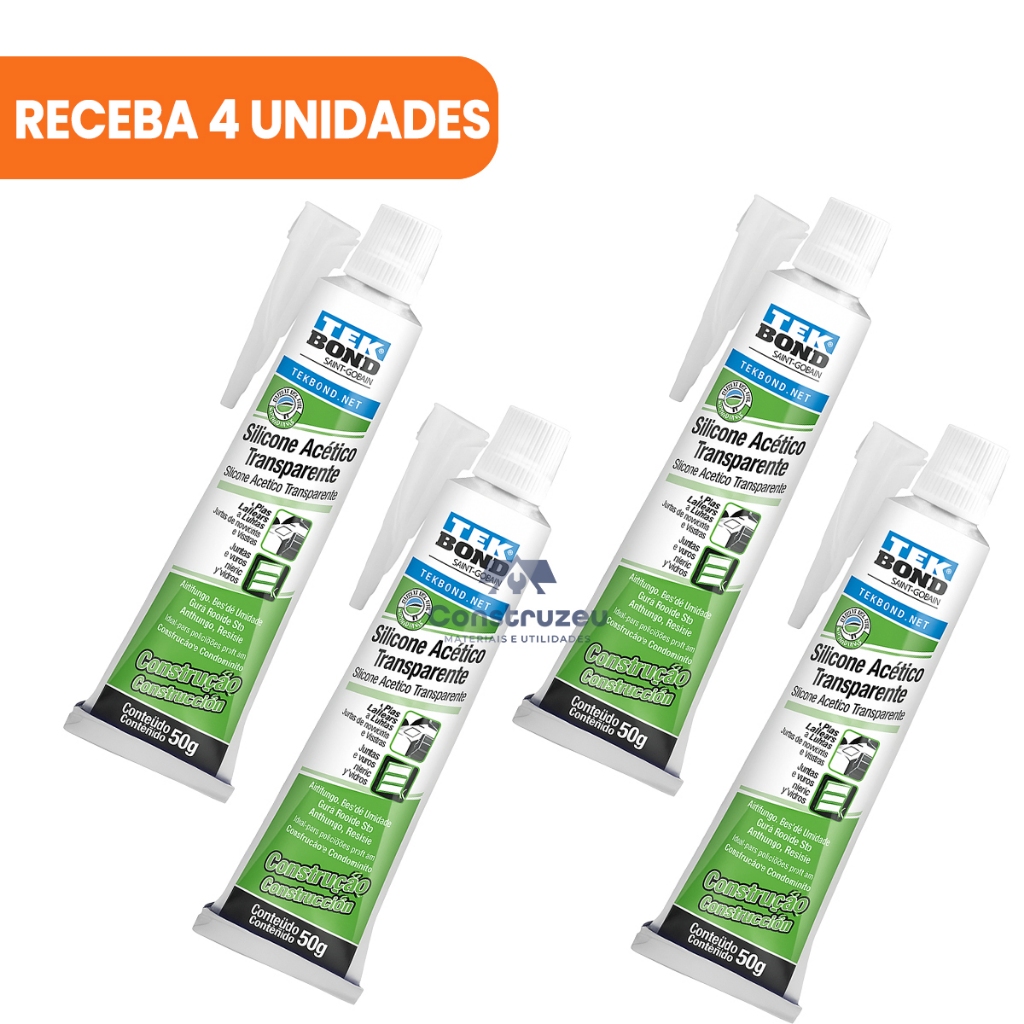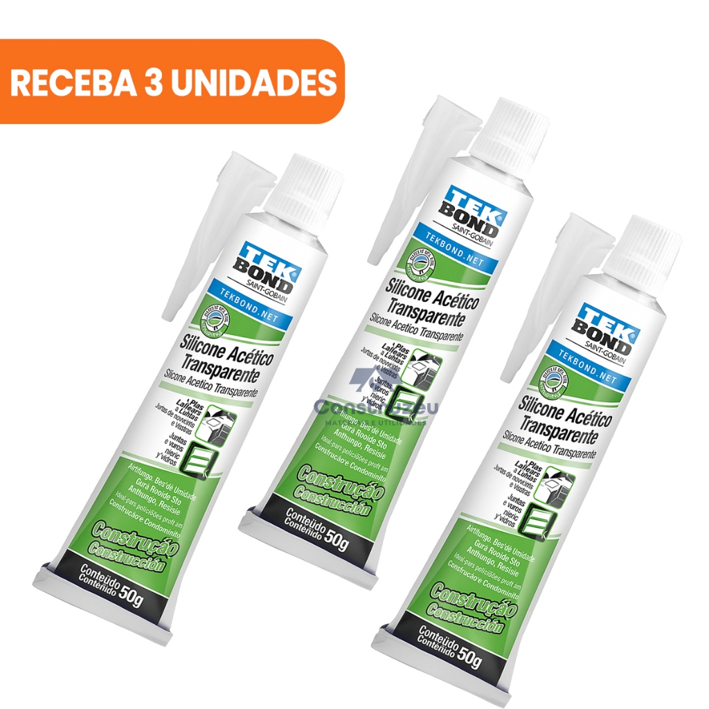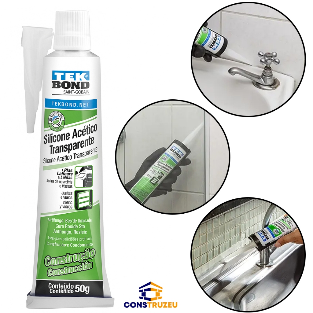 Silicone Acético Transparente Vedação Selagem Pia Box Banheiro Portas Janelas Bisnaga 50g Tekbond