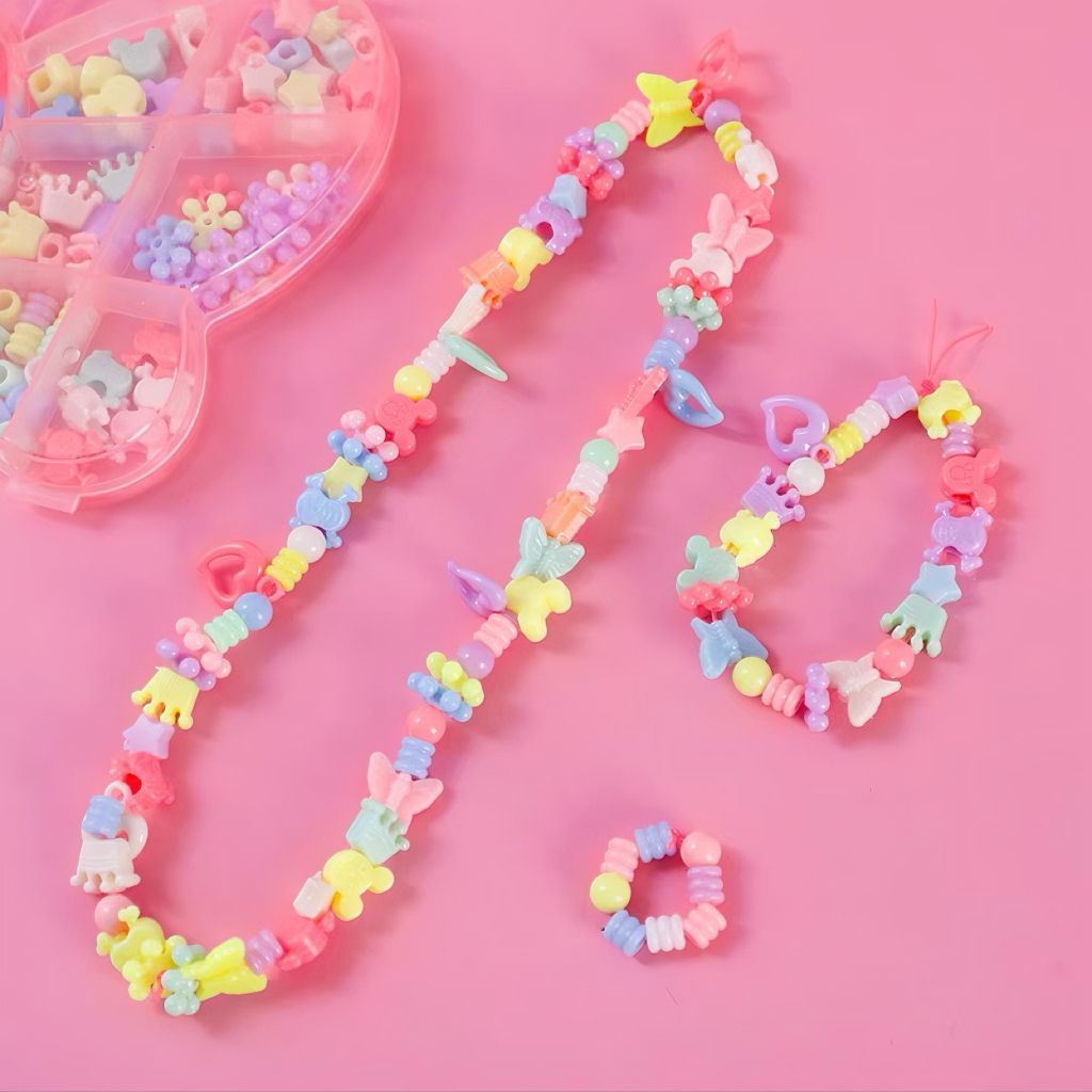 Kit Miçanga Infantil Para Pulseira Colar e Brincos Maleta Miçangas + Silicone Presente