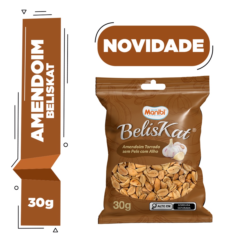 Kit c/ 25 Pacotes Amendoim Torrado Salgado c/ Alho 30g - Pacote com 750g -Beliskat