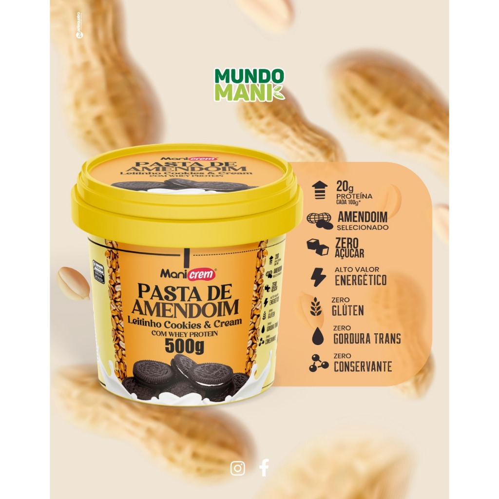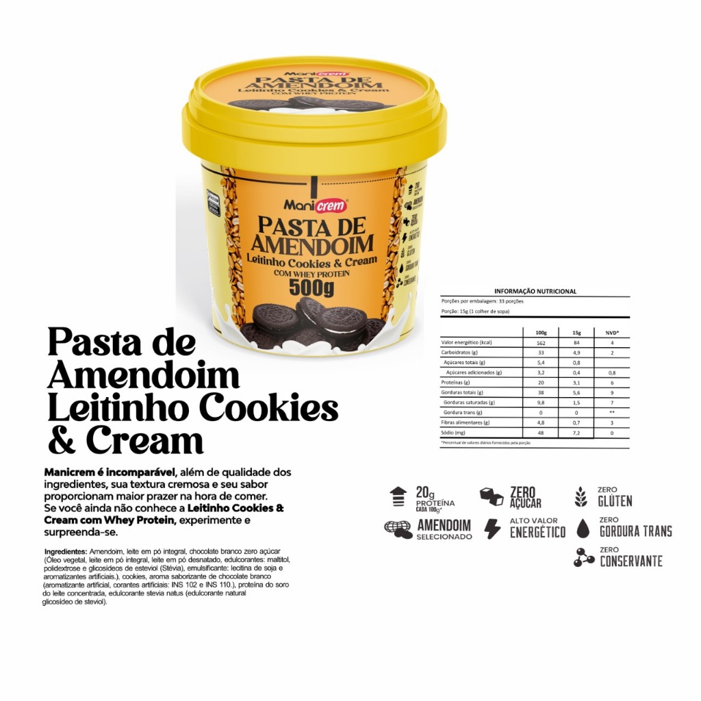 Pasta de Amendoim Leitinho Cookies e Cream com Whey Protein Kit com 02 unid 500g - Manicrem