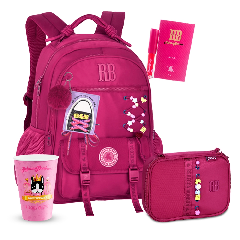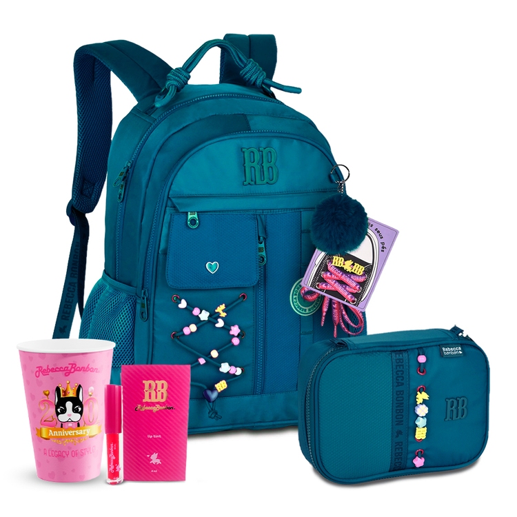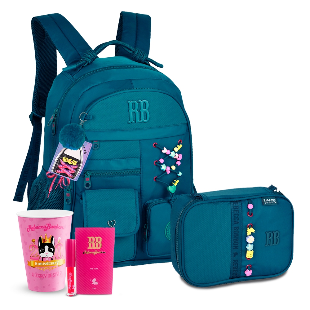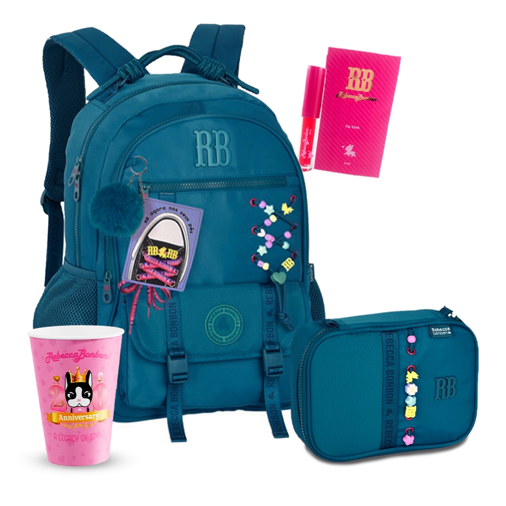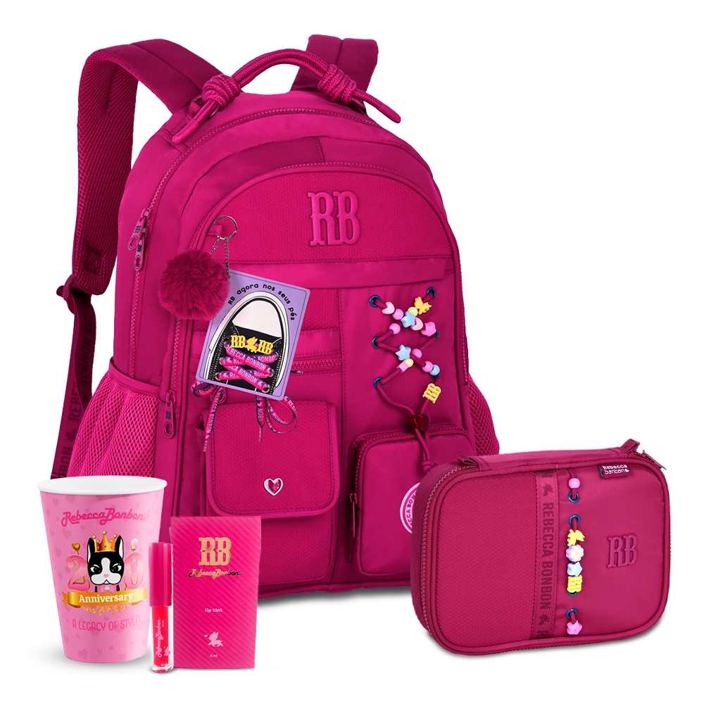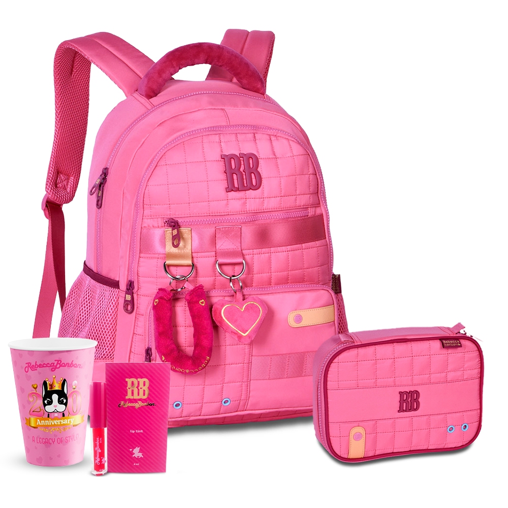 Kit Mochila Rebecca Bonbon Estojo Box Lancheira Térmica 2 em 1 RB Metalizado Costas Acolchoadas