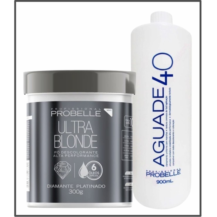 COMBO - Pó Descolorante Profissional Ultra Blond Diamante Platinado 300g Probelle + Água oxigenada Cremosa 40 vol 900m