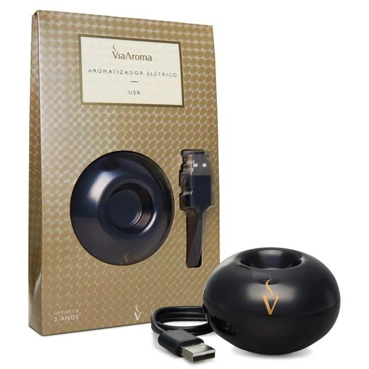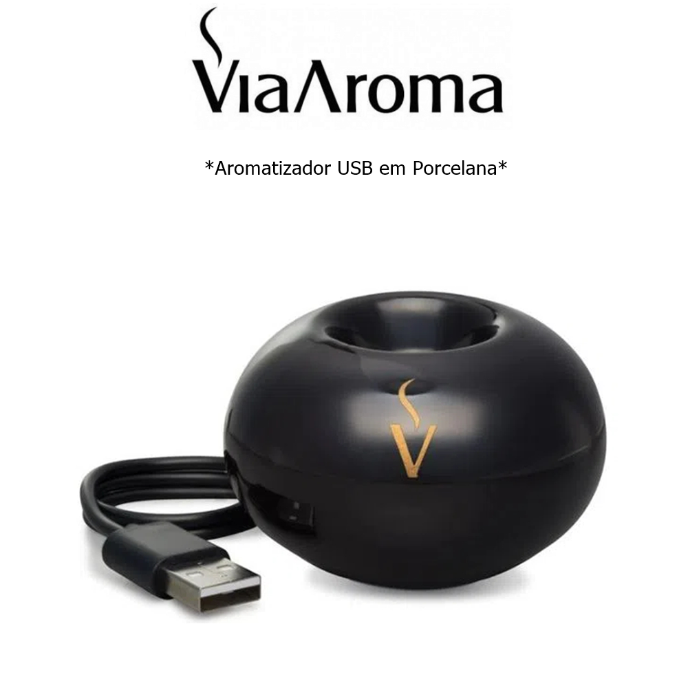 Aromatizador Difusor USB BLACK em Porcelana Via Aroma - cabo 65cm