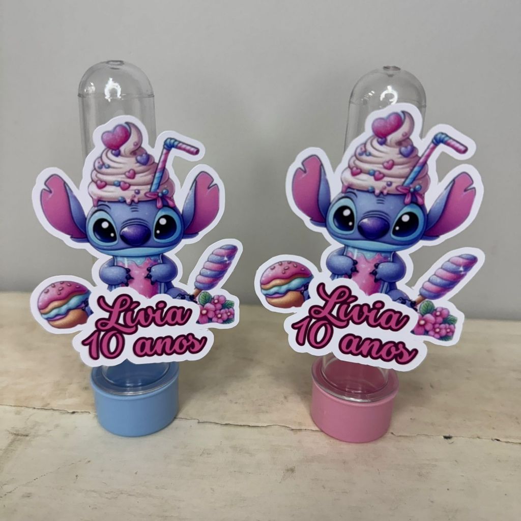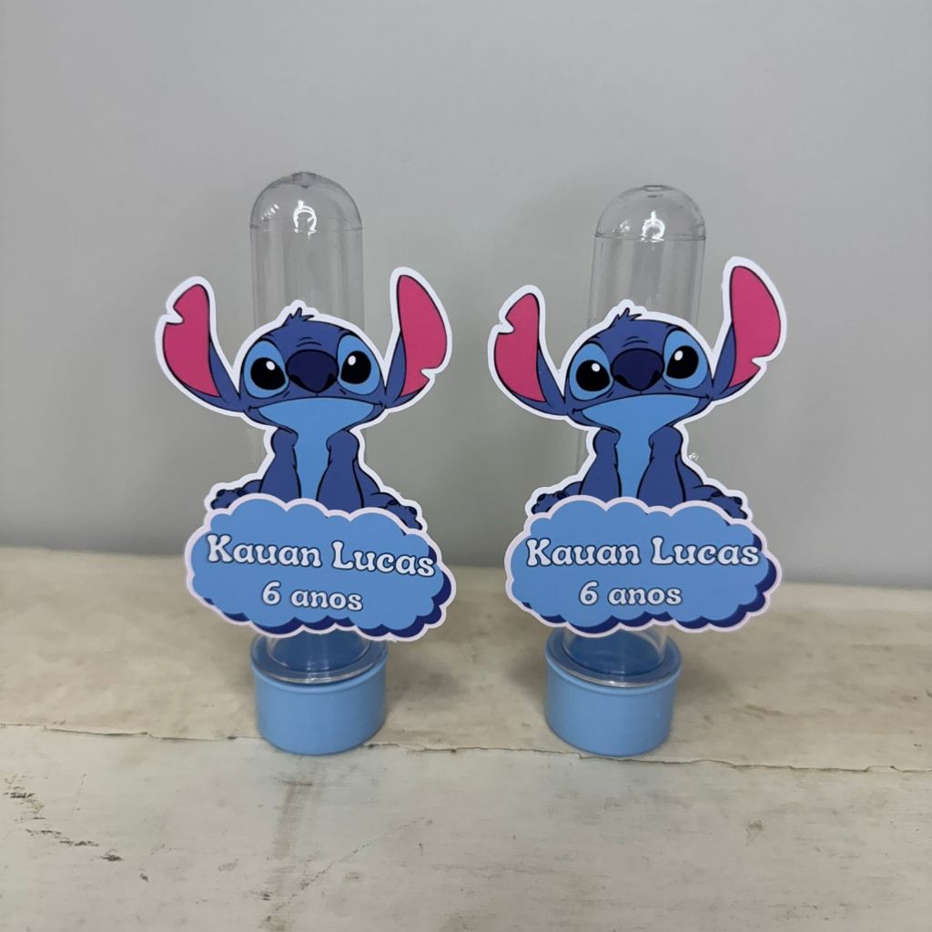 Tubetes + Apliques 3D Personalizado Lembrancinha Festa Aniversário Stitch