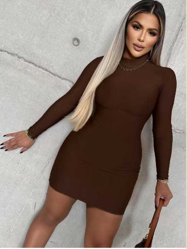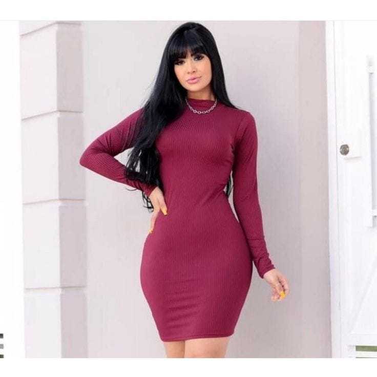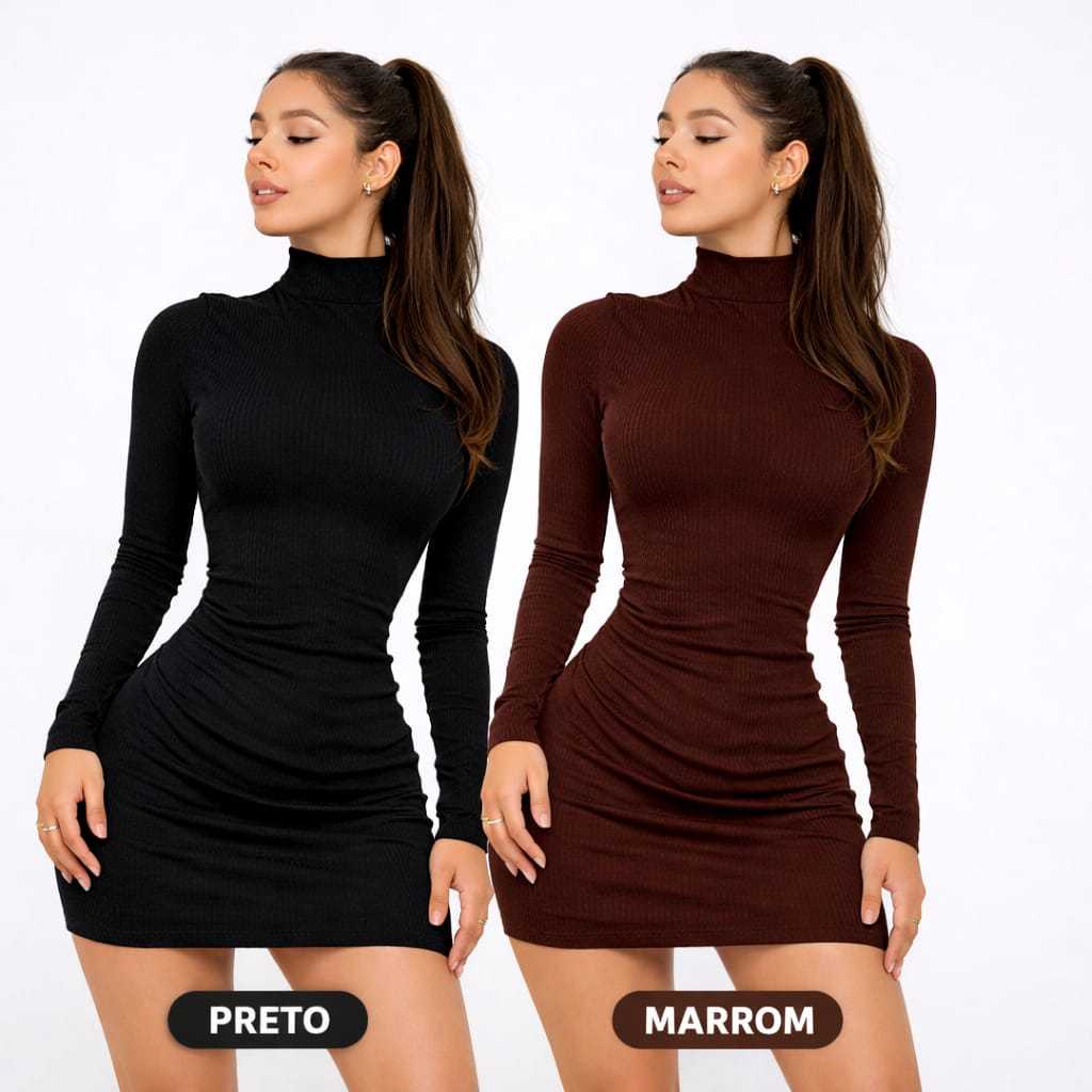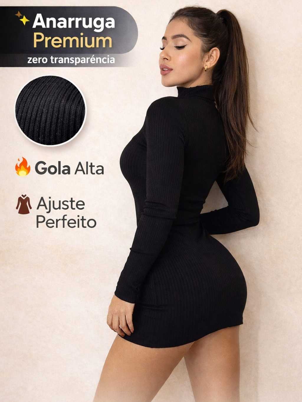Vestido Manga Longa Gola Alta Feminino Anarruga Premium Tubinho Ajustado Moda Blogueira Inverno