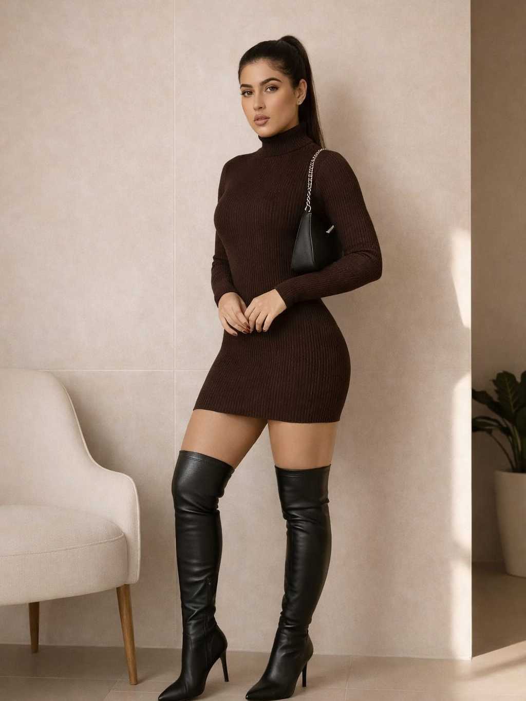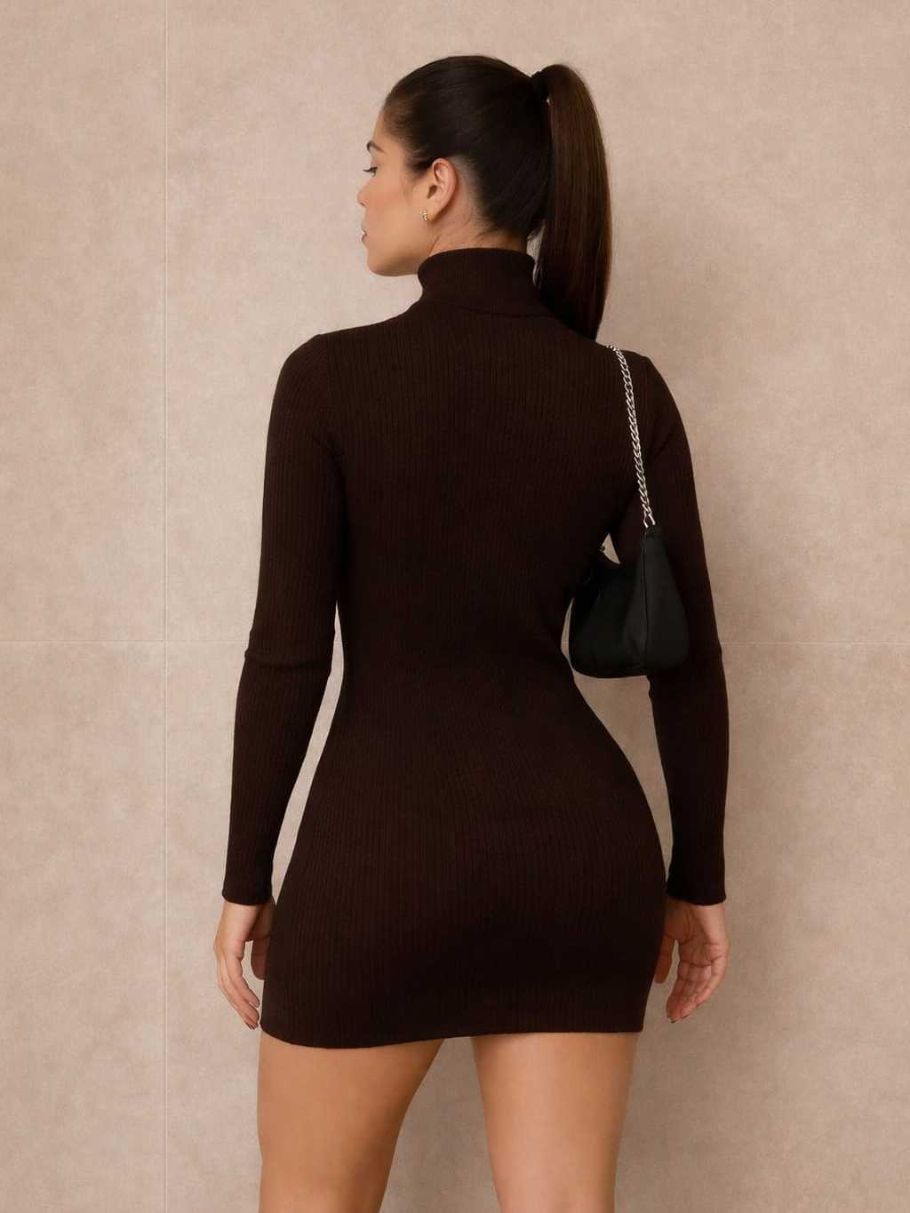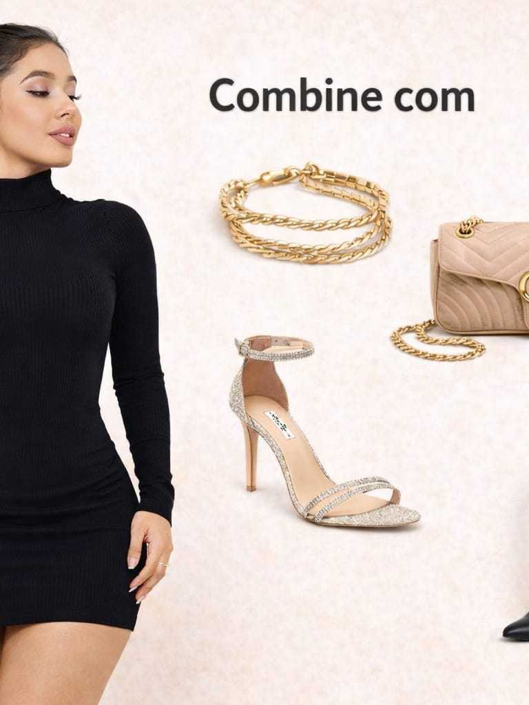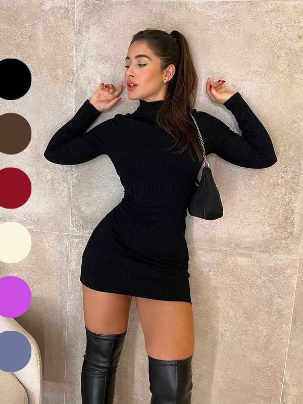 Vestido Manga Longa Gola Alta Feminino Anarruga Premium Tubinho Ajustado Moda Blogueira Inverno