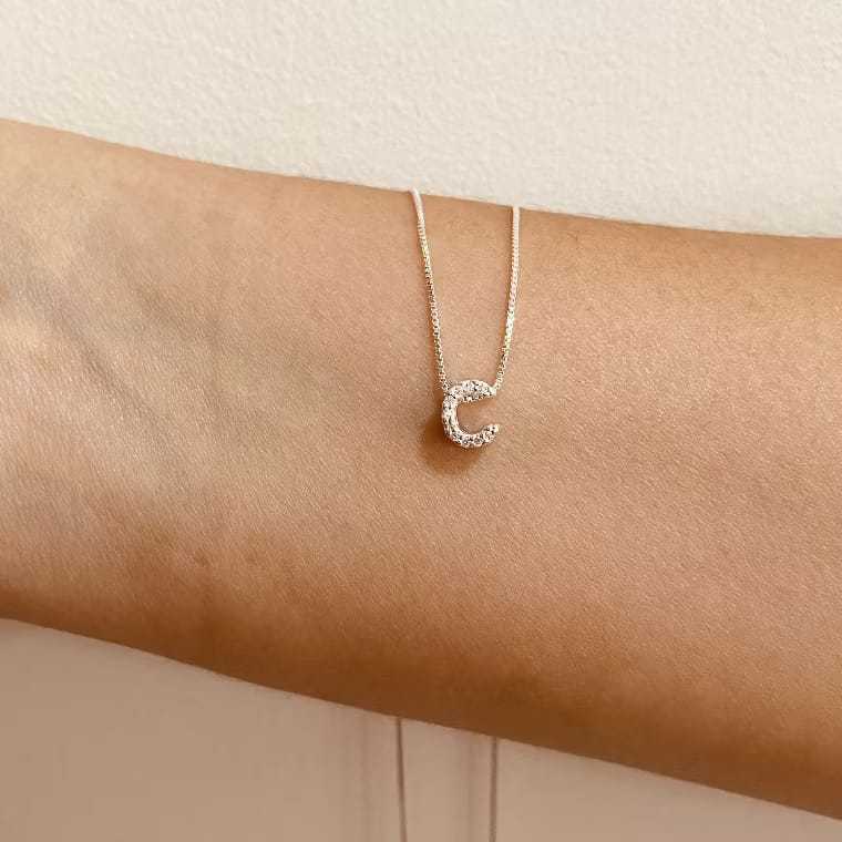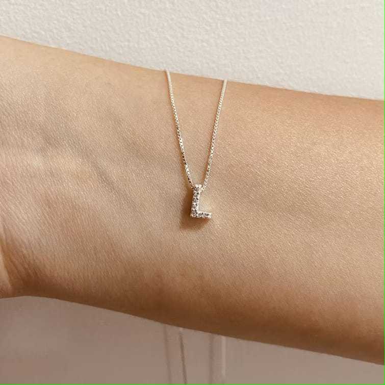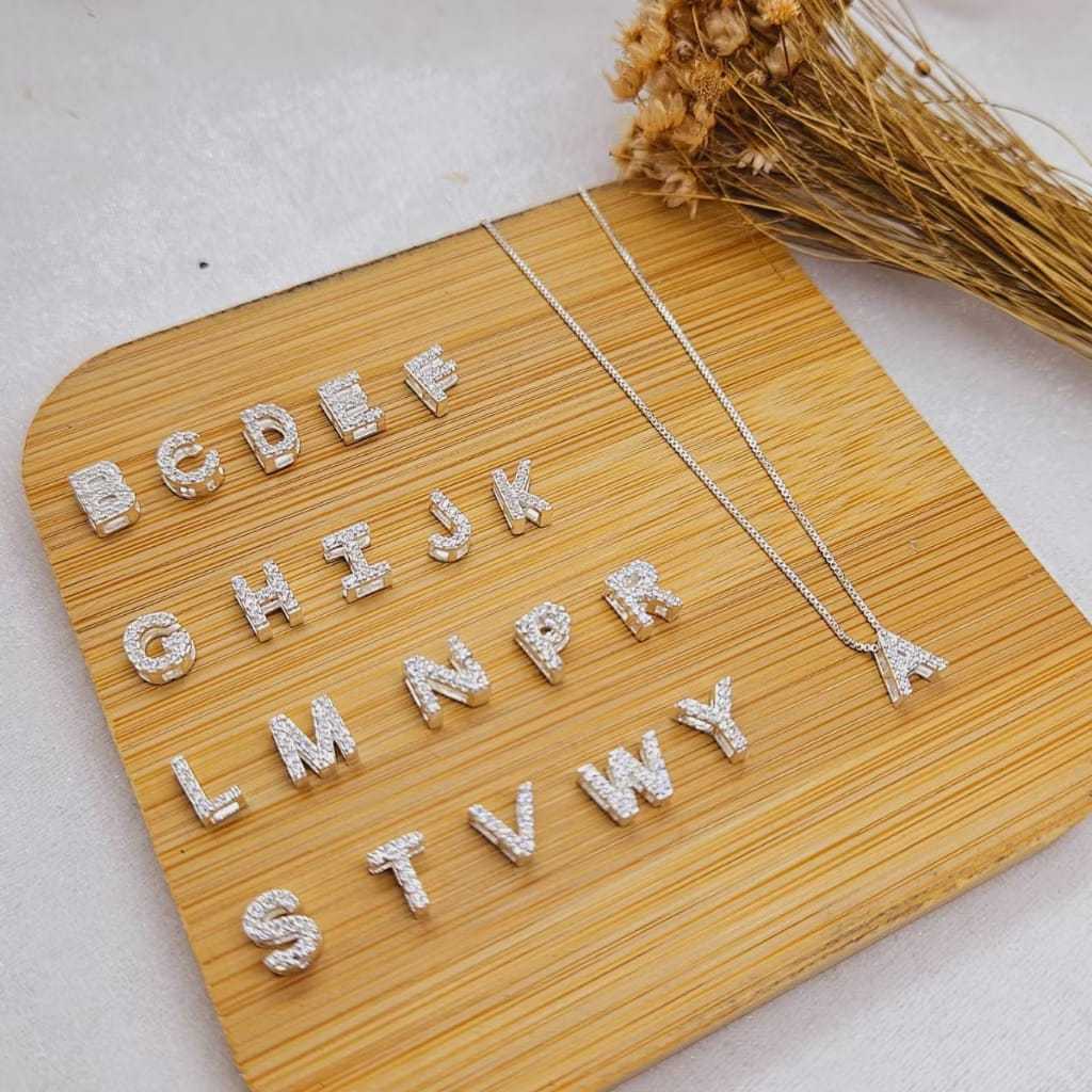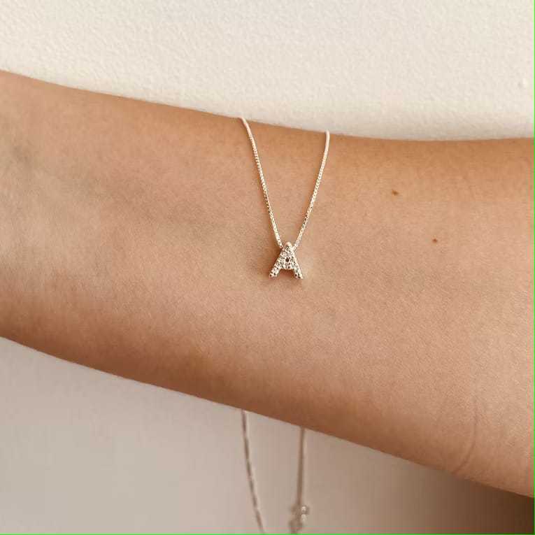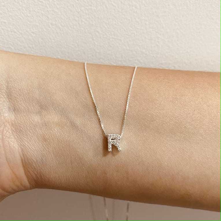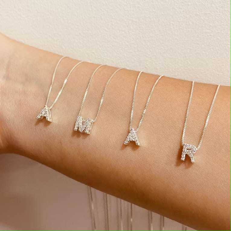 Colar Personalizado Letra Cravejada em Zircônias Prata/Dourado