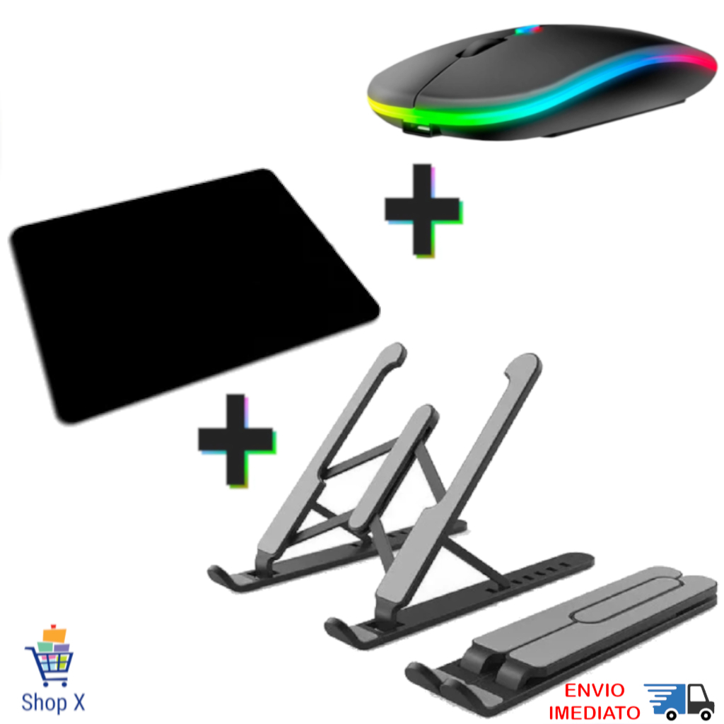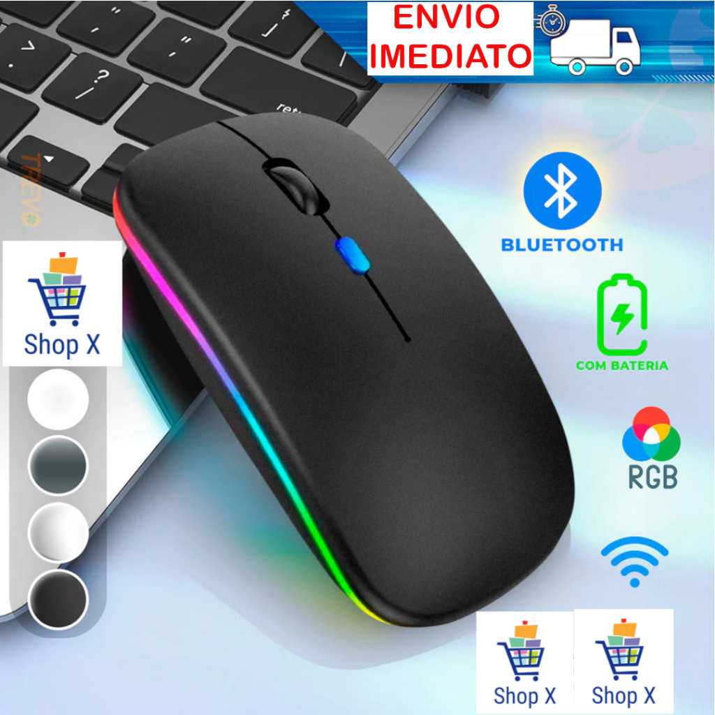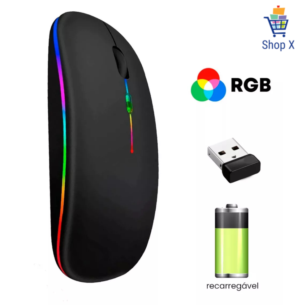 Kit Mouse Sem Fio Recarregável mais Mousepad - Mouse Bluetooth Wireless RGB Ergonômico Silencioso