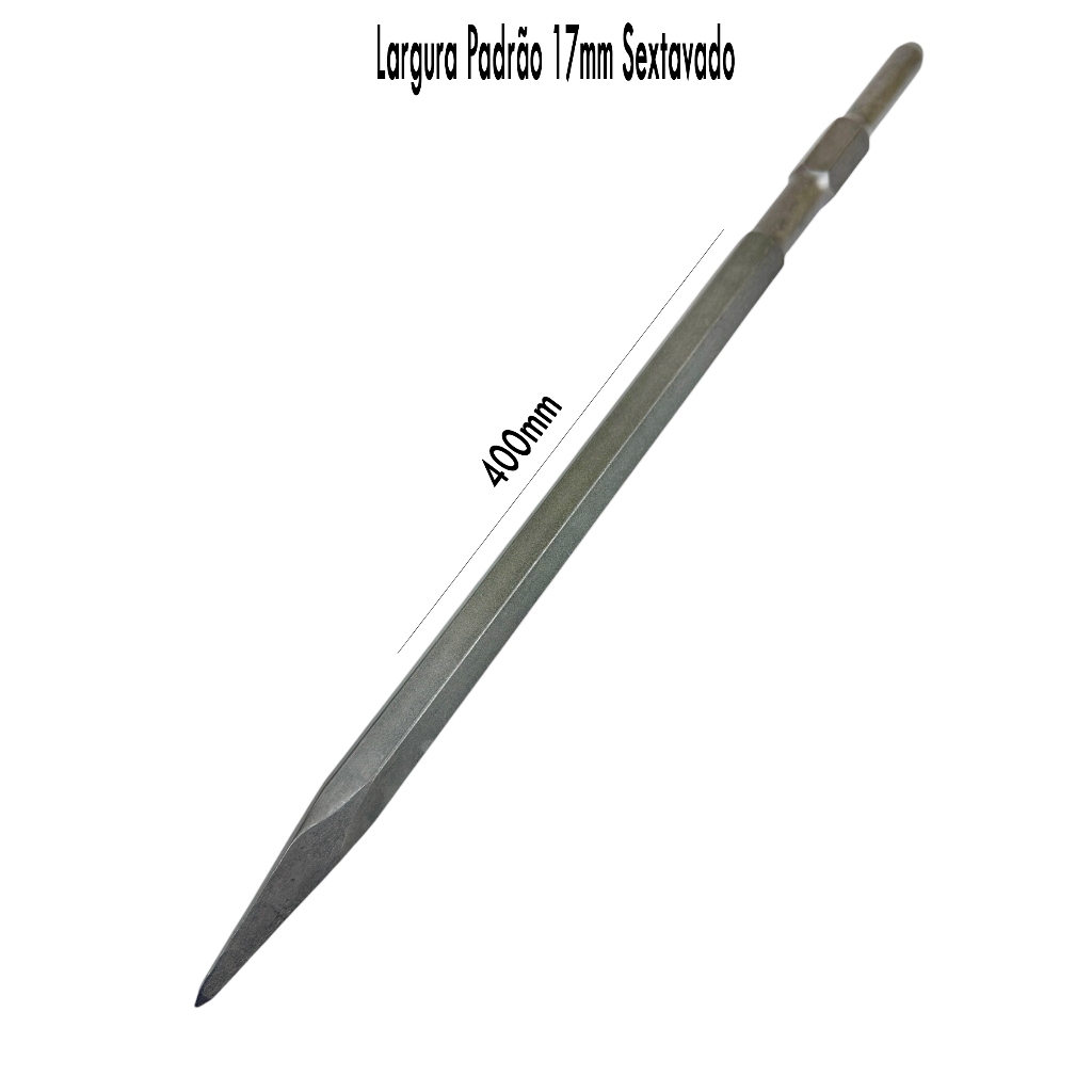 Ponteiro e Talhadeira Longo Para Martelete Rompedor Sextavado 17x400mm - ENVIO IMEDIATO