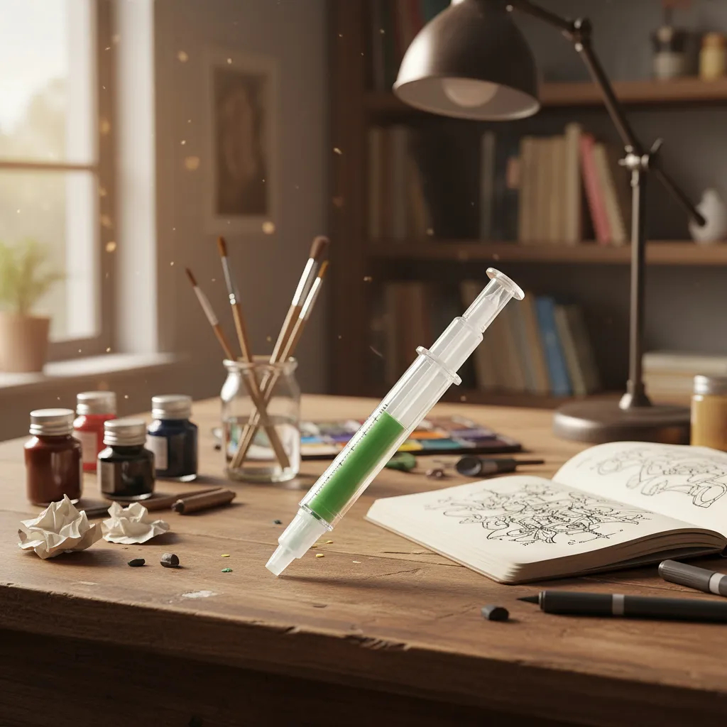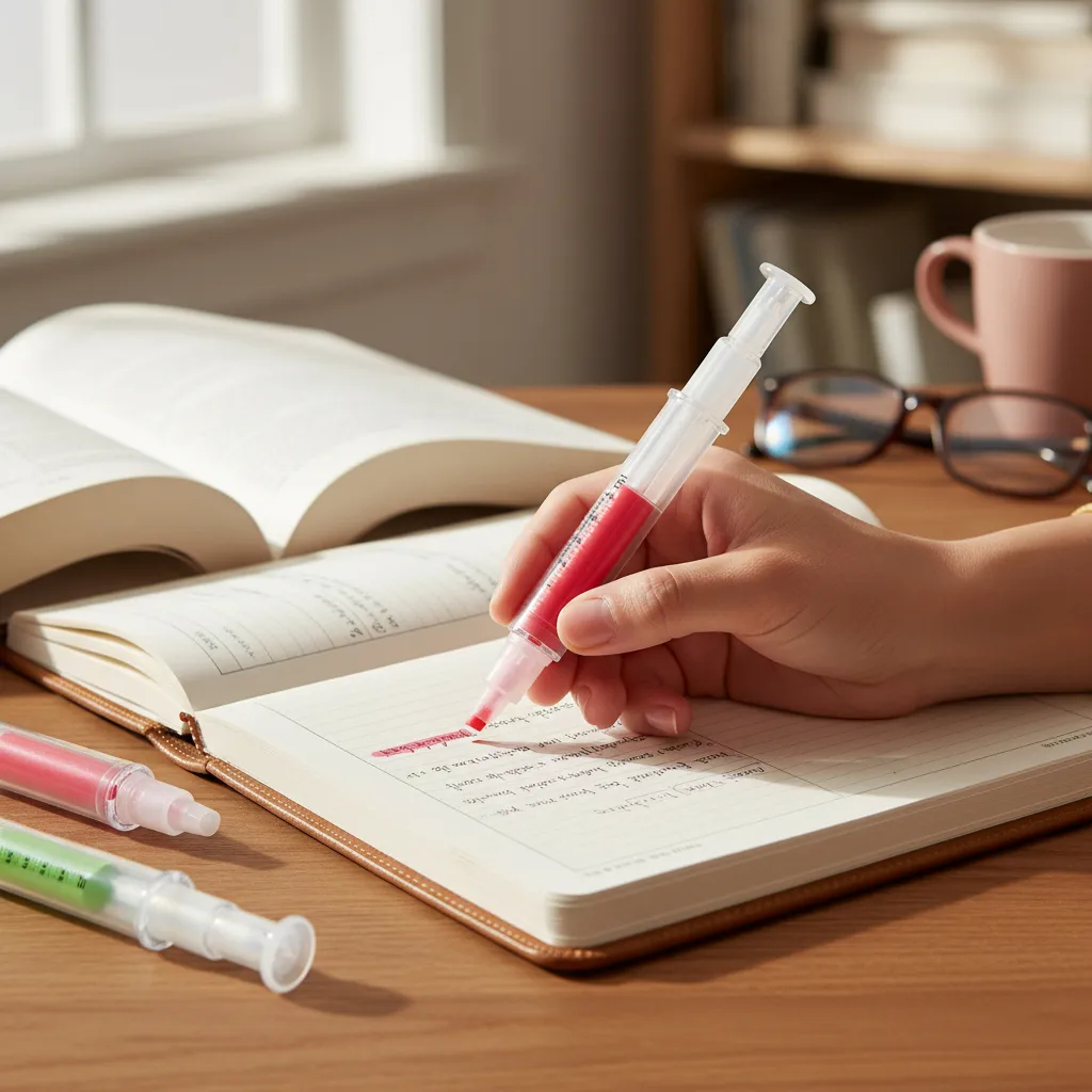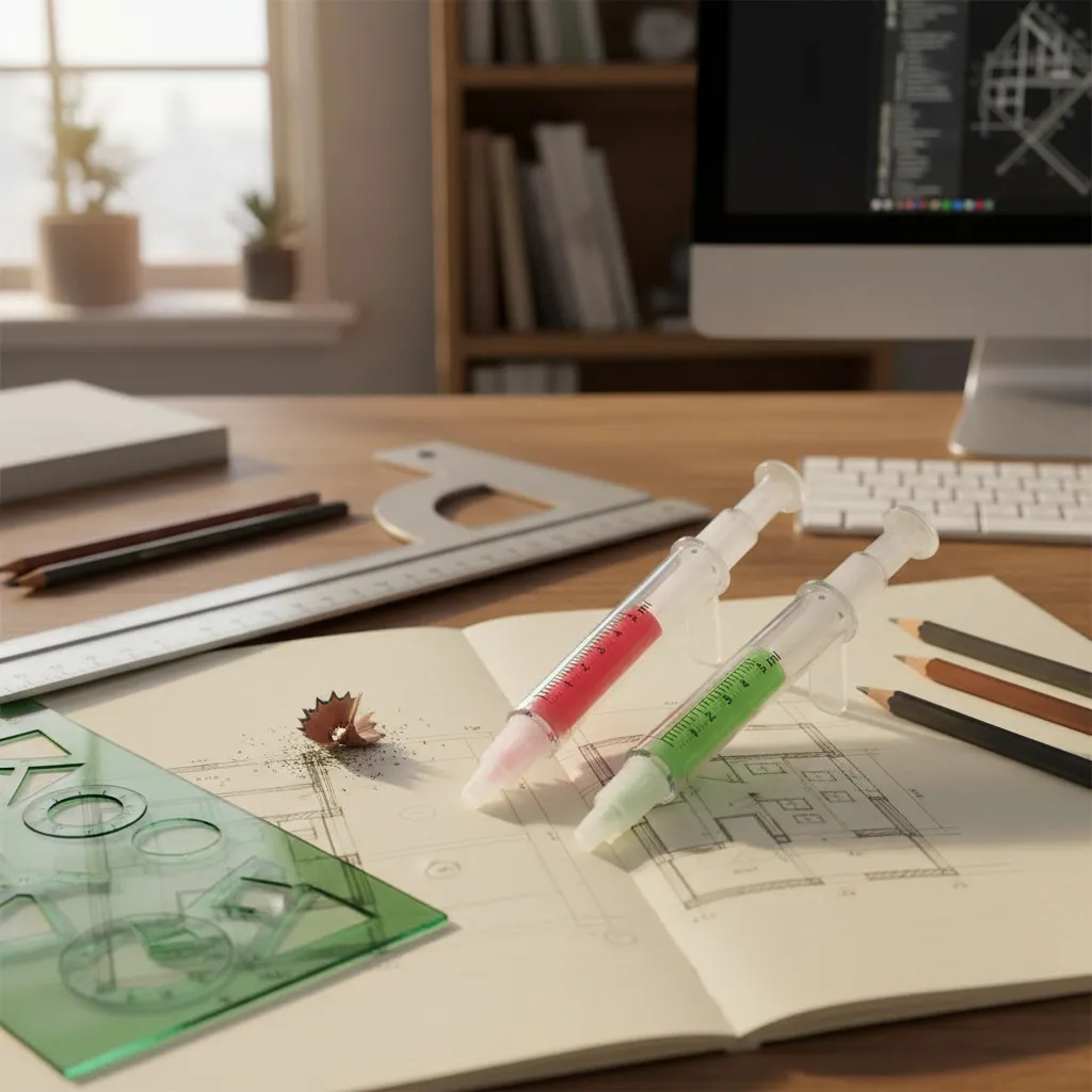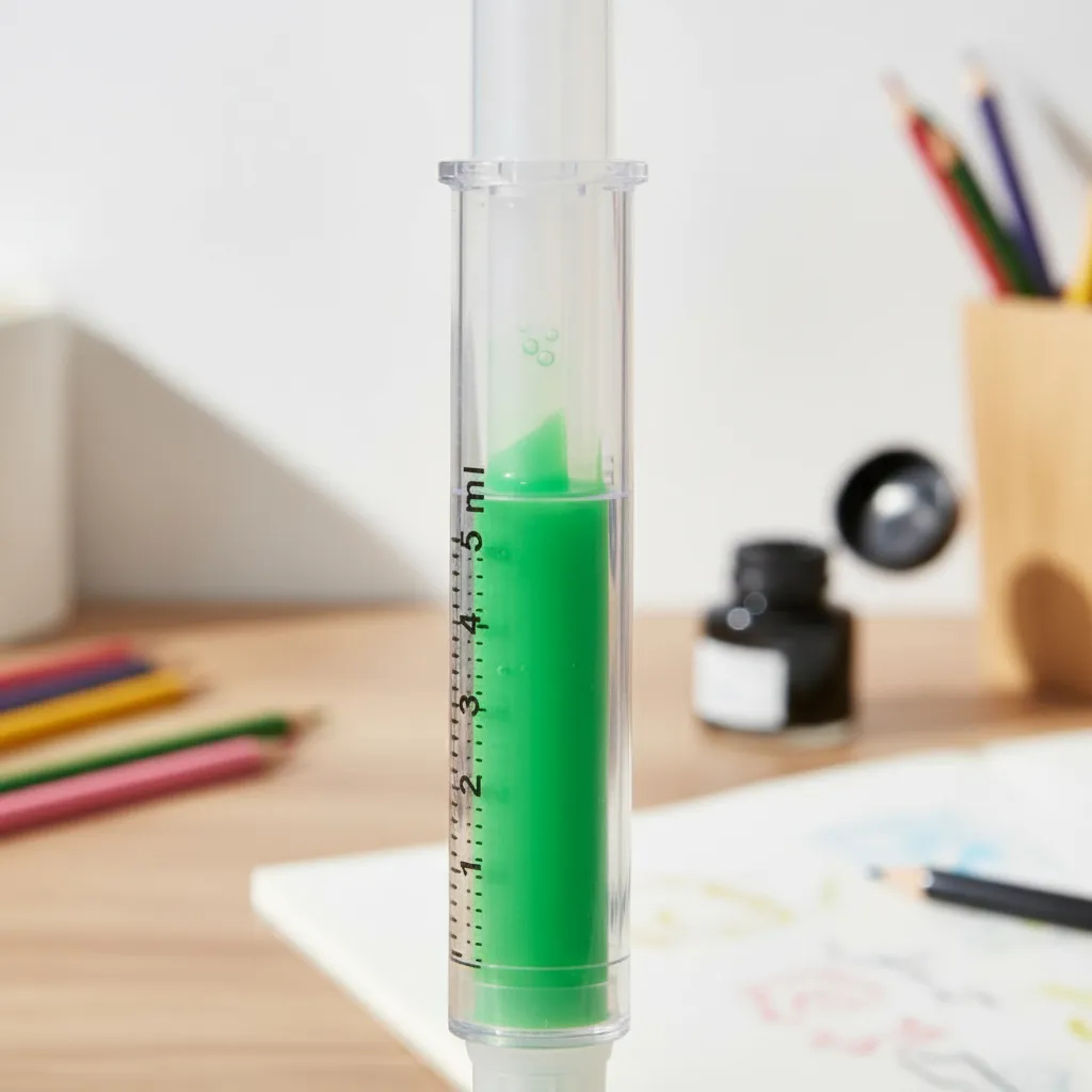 Kit 15 Canetas Esferográficas Com Marca Texto Formato Seringa