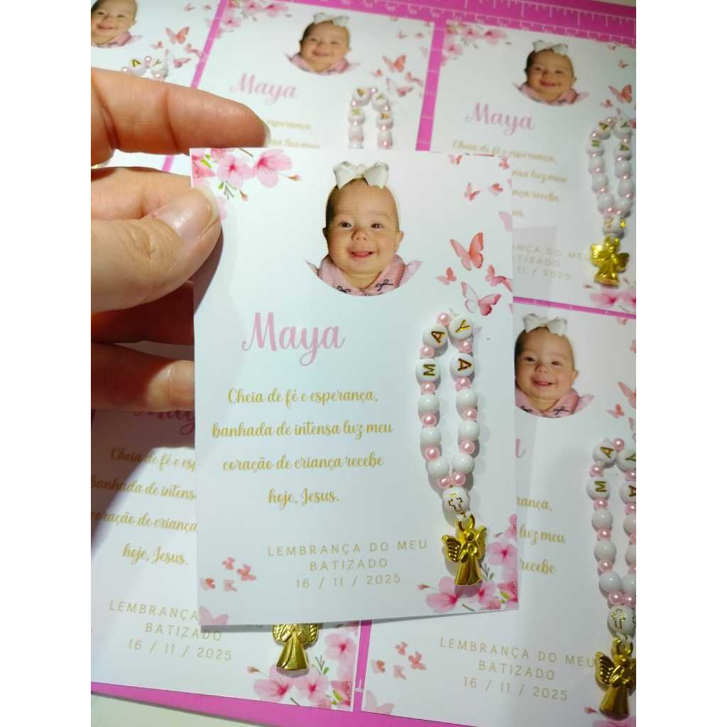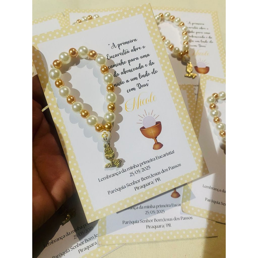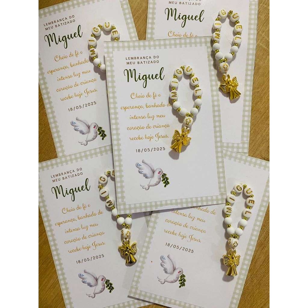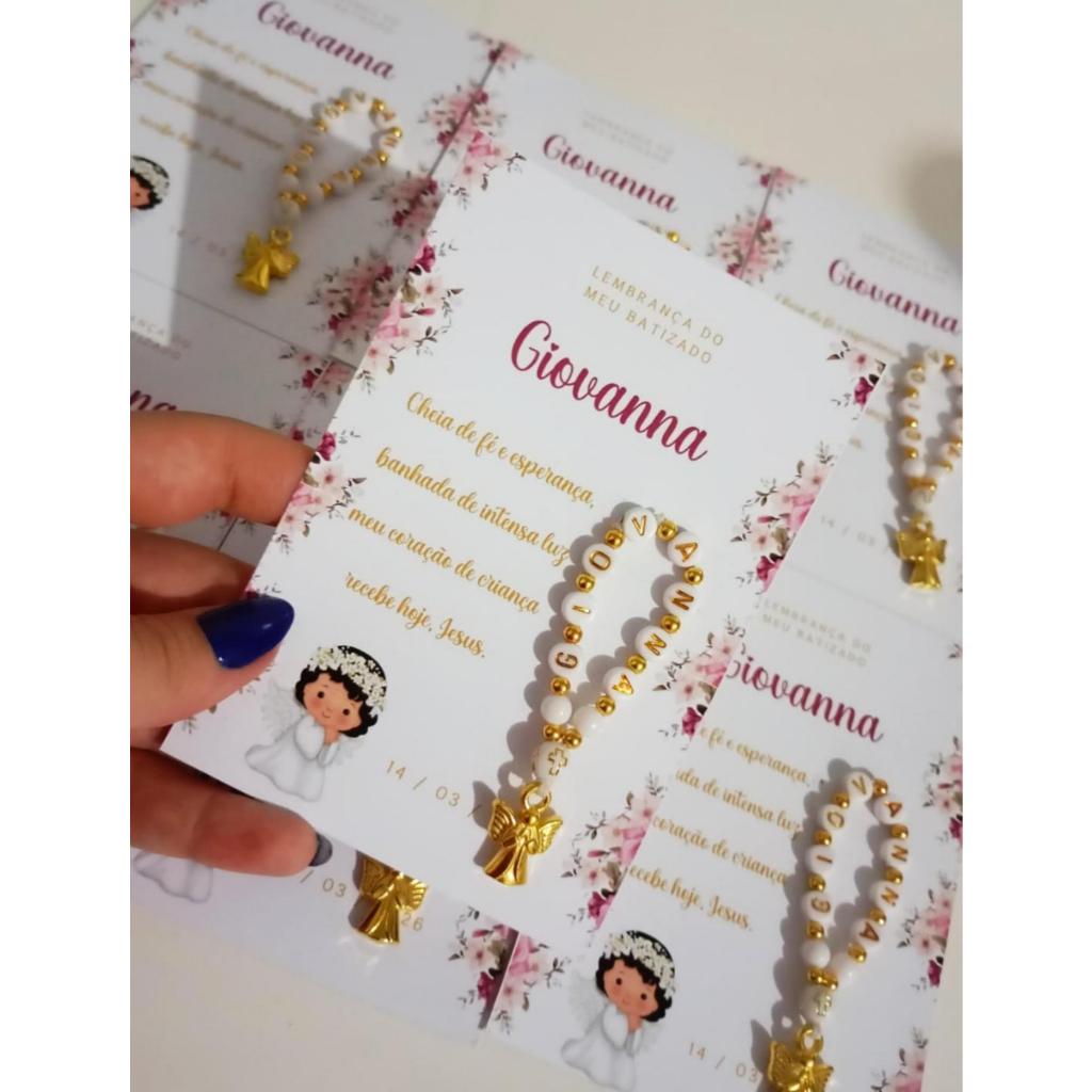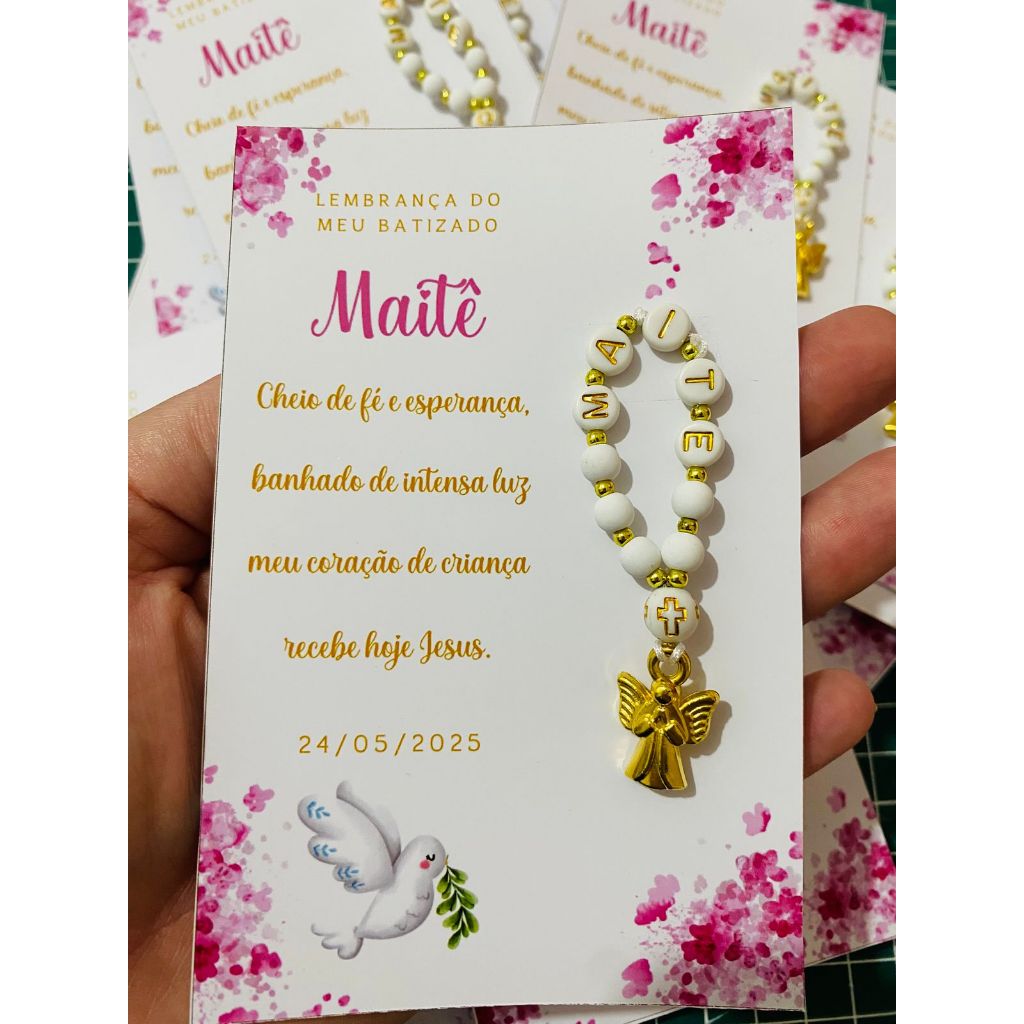 Mini Terço Personalizado - Lembrancinha para batismo, eucaristia e primeira comunhão