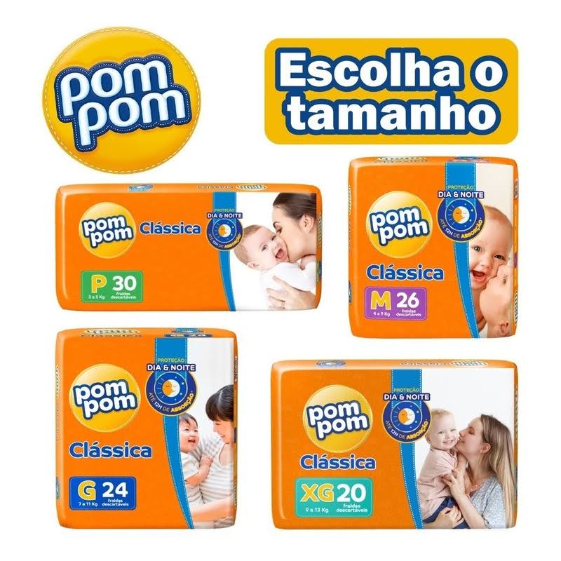 Fralda Descartável Pom Pom Clássica DIA E NOITE Tam:P / M / G / XG / XXG ATACADO BARATO