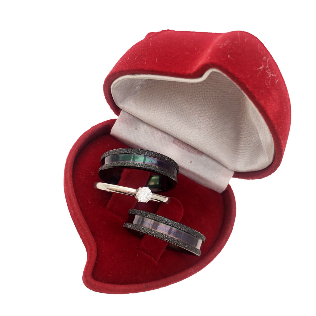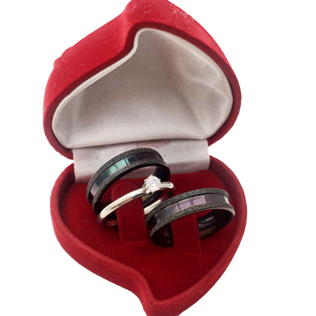 Par Alianças Namoro Diferente Preto Black FullCollor Chanfrada Polida Diamantada+Anel Compromisso