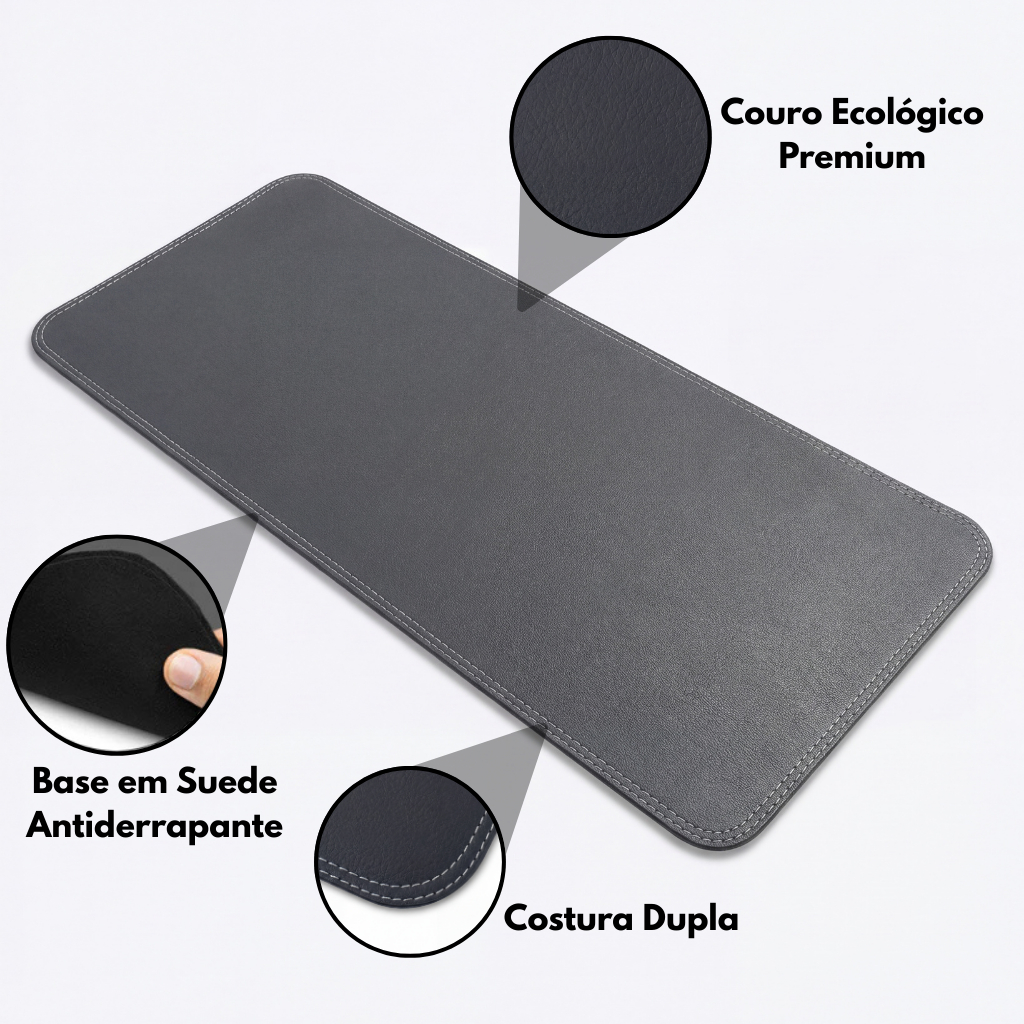 MousePad DeskPad 90x40cm Couro Premium Borda Costurada Antiderrapante Tapete Mesa Gamer Trabalho Estudo Protetor