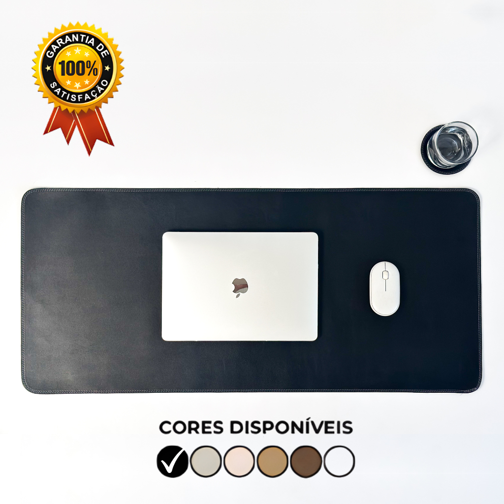 DeskPad 90X40cm Gigante Courino Premium Antiderrapante com Borda Costurada