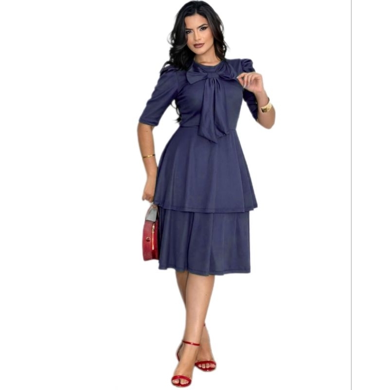 Vestido gode evangelico vestido feminino rodado saia dupla midi