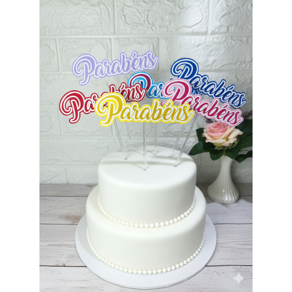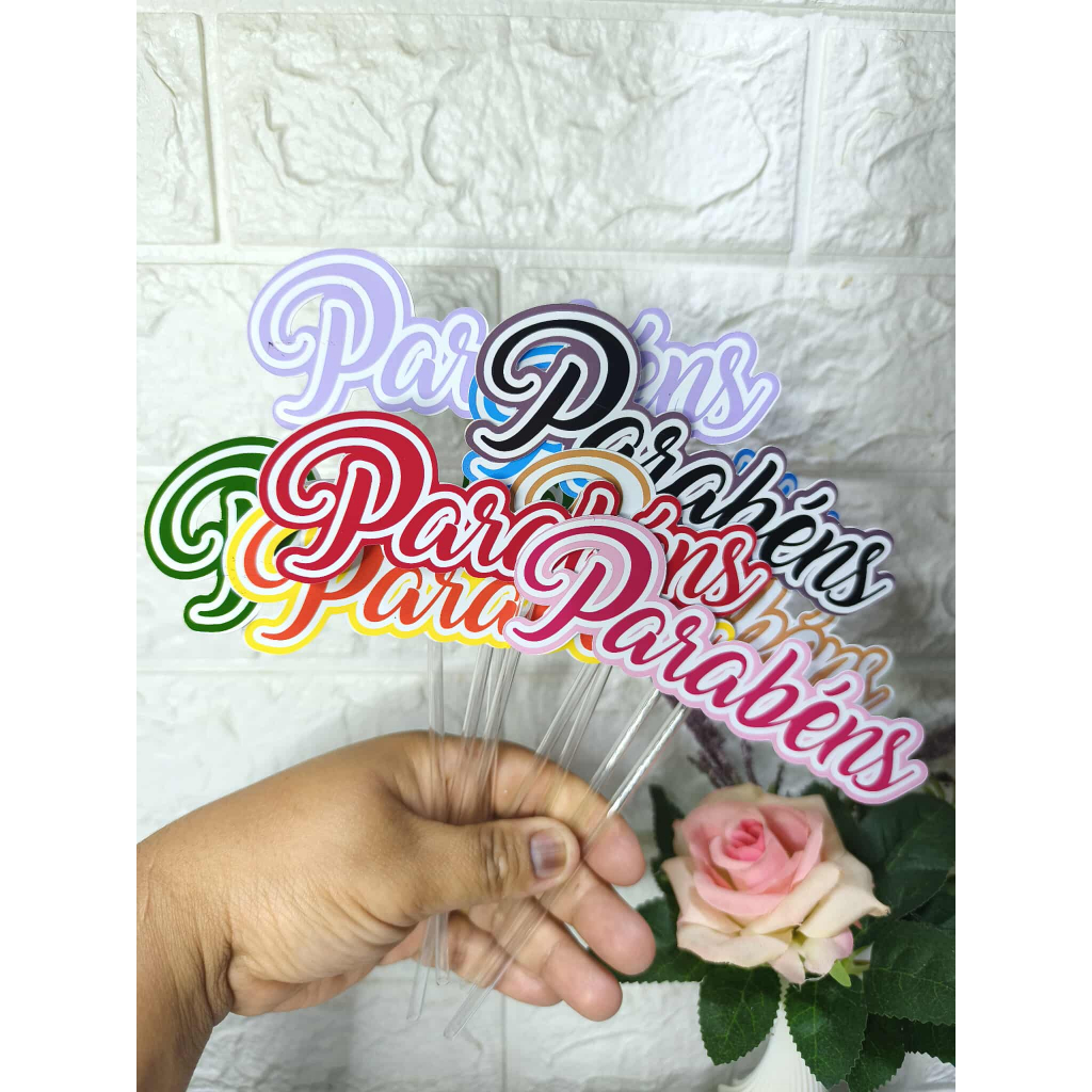 Kit 10 Topos de Bolo Plaquinhas Parabéns✨ENVIO IMEDIATO -