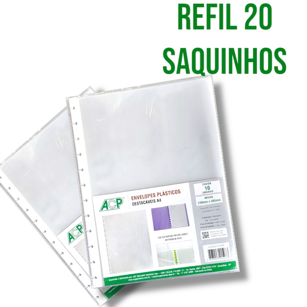 Pasta Catálogo Inteligente Disco A4 com 20 Envelopes Plástico Papelaria Escritório