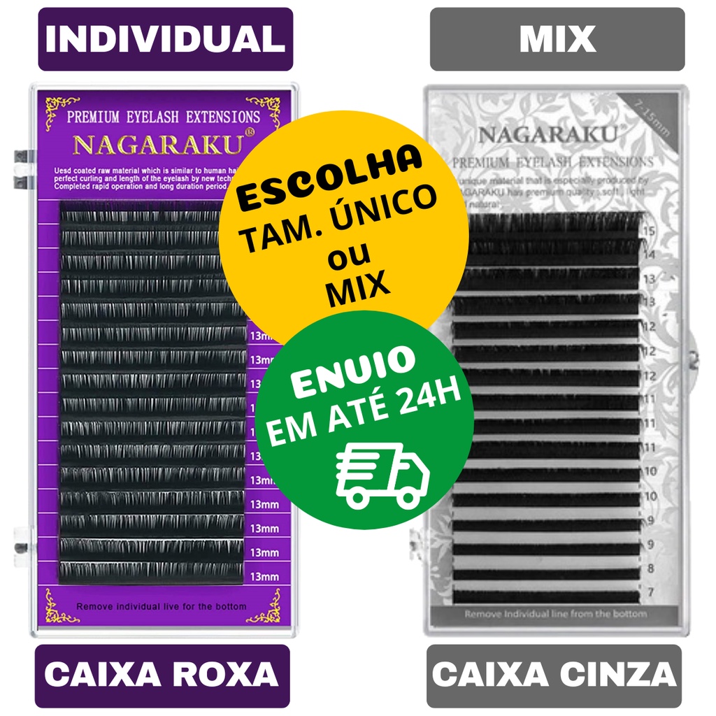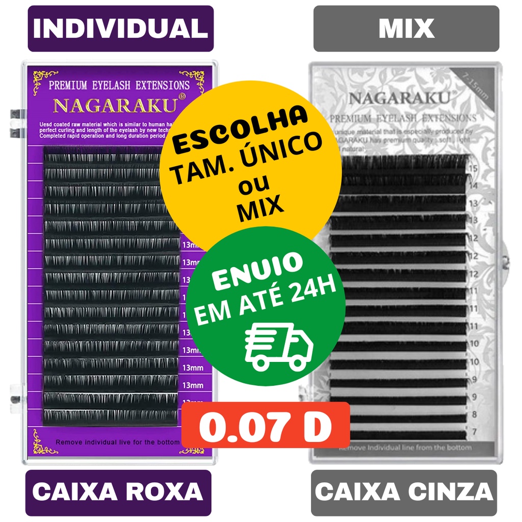 Cílios Nagaraku Fio a Fio ou Volume Russo Caixa Roxa Extensão De Cílios - 0.05 0.07 0.15 C e D