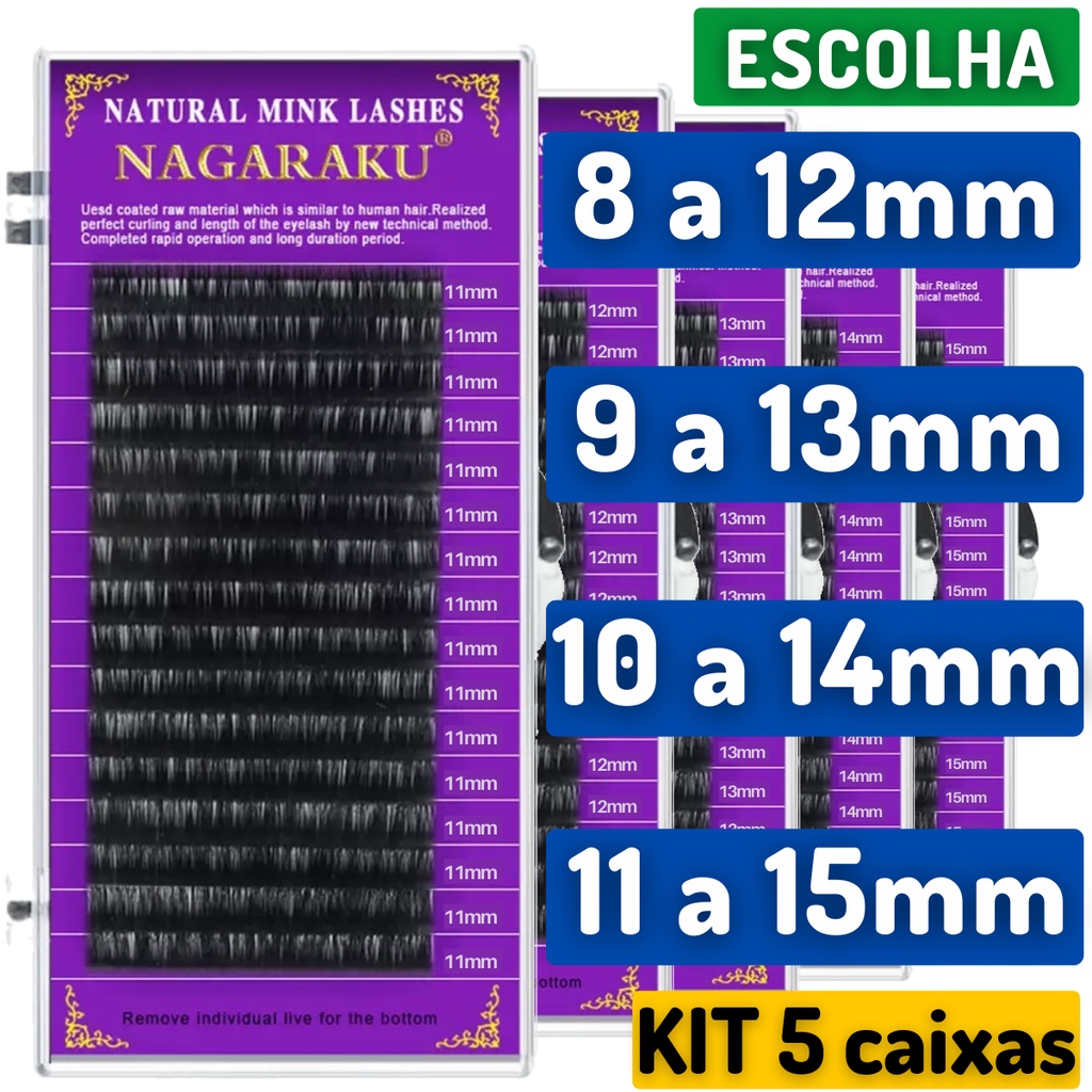 Kit 5un Cílios Nagaraku Fio a Fio C D 0.05 0.07 0.15 Volume Russo - Premium Extension Lashes