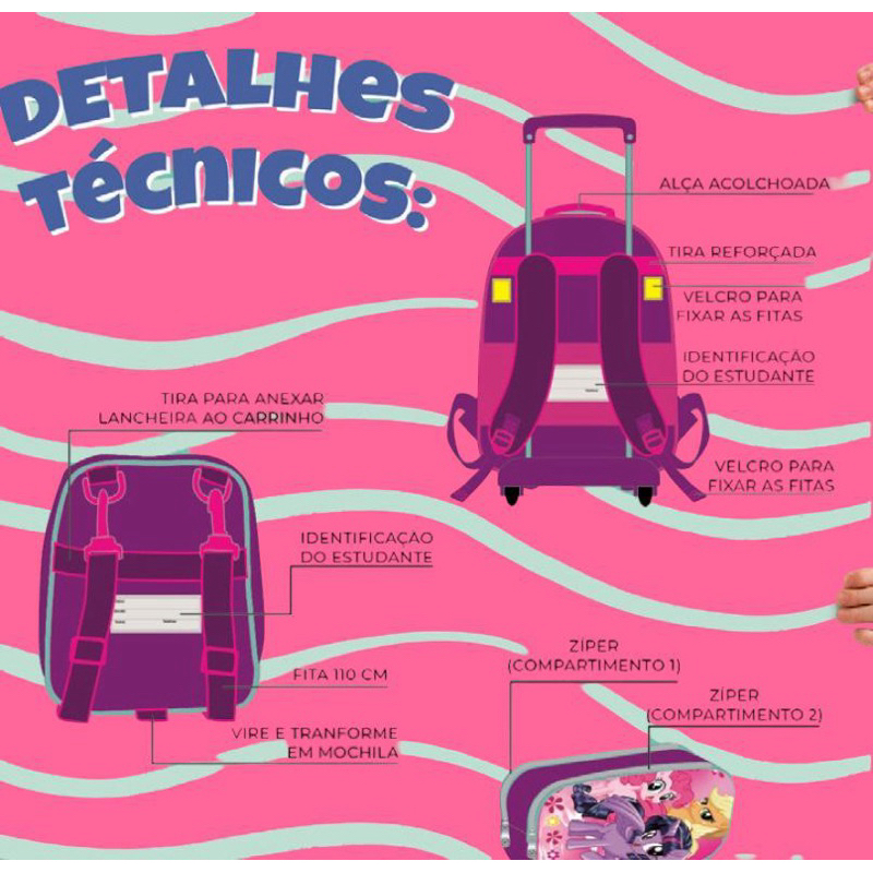 Kit Mochila Infantil Esoclar Rodinha Gatinho Glitter Yepp