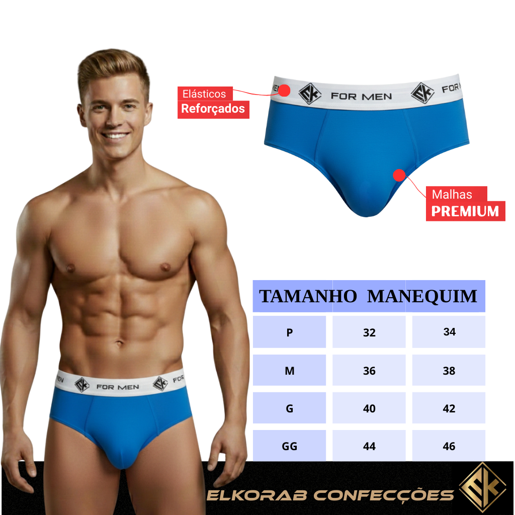 Kit 12un Cuecas Slip Masculina Men Adulto 100% Algodão Tradicional El Korab Original