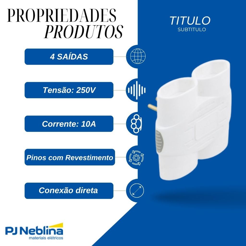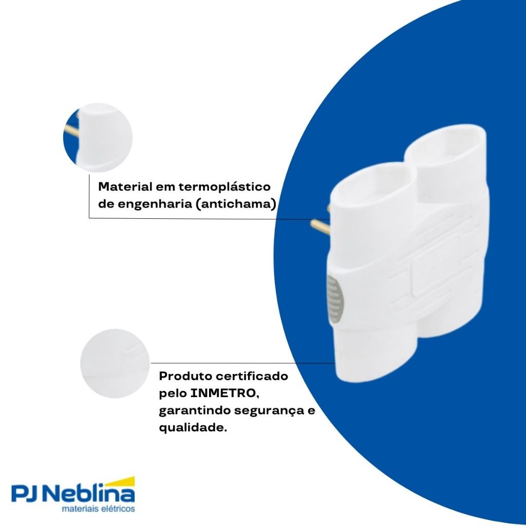 Adaptador Tomada Benjamin 4 Saídas Branco 250V10A 2p+T DN1838 Daneva Pino multiplicador