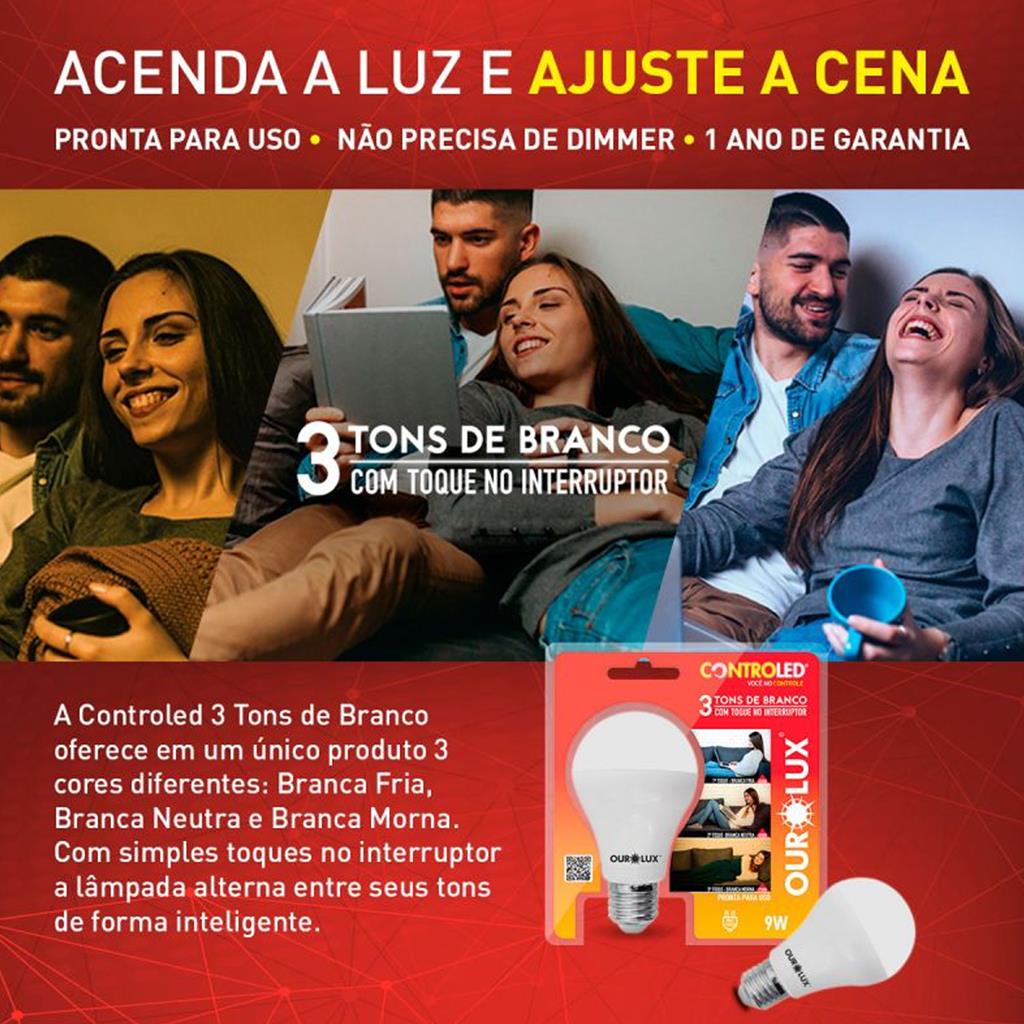 Lampada Led Inteligente Controled 3 Tons Branco 9W E27