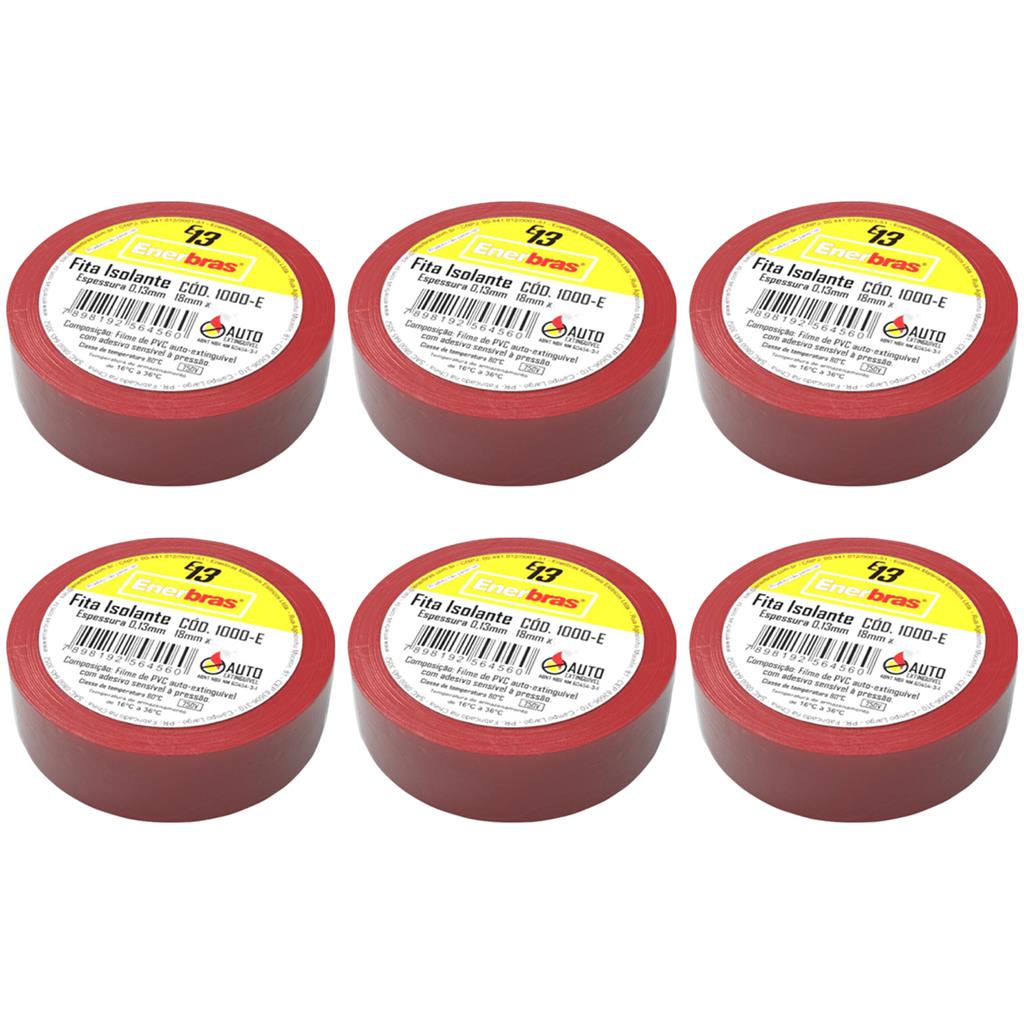 Kit 6 Fitas Isolantes 18mmx20m Vermelha PVC E13 Enerbras