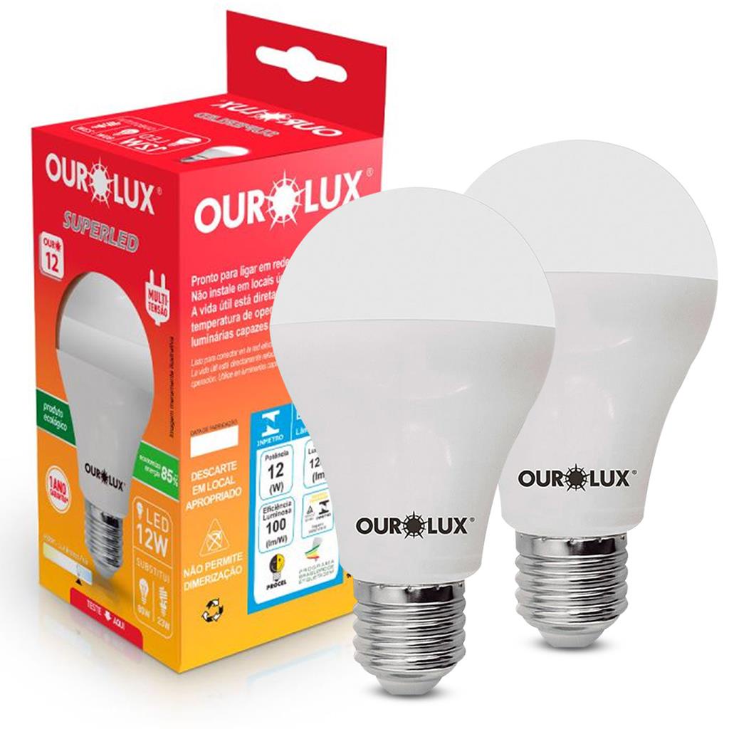 Kit 2 Lampadas Led Bulbo A60 12w Bivolt E27 6500K Luz Branca